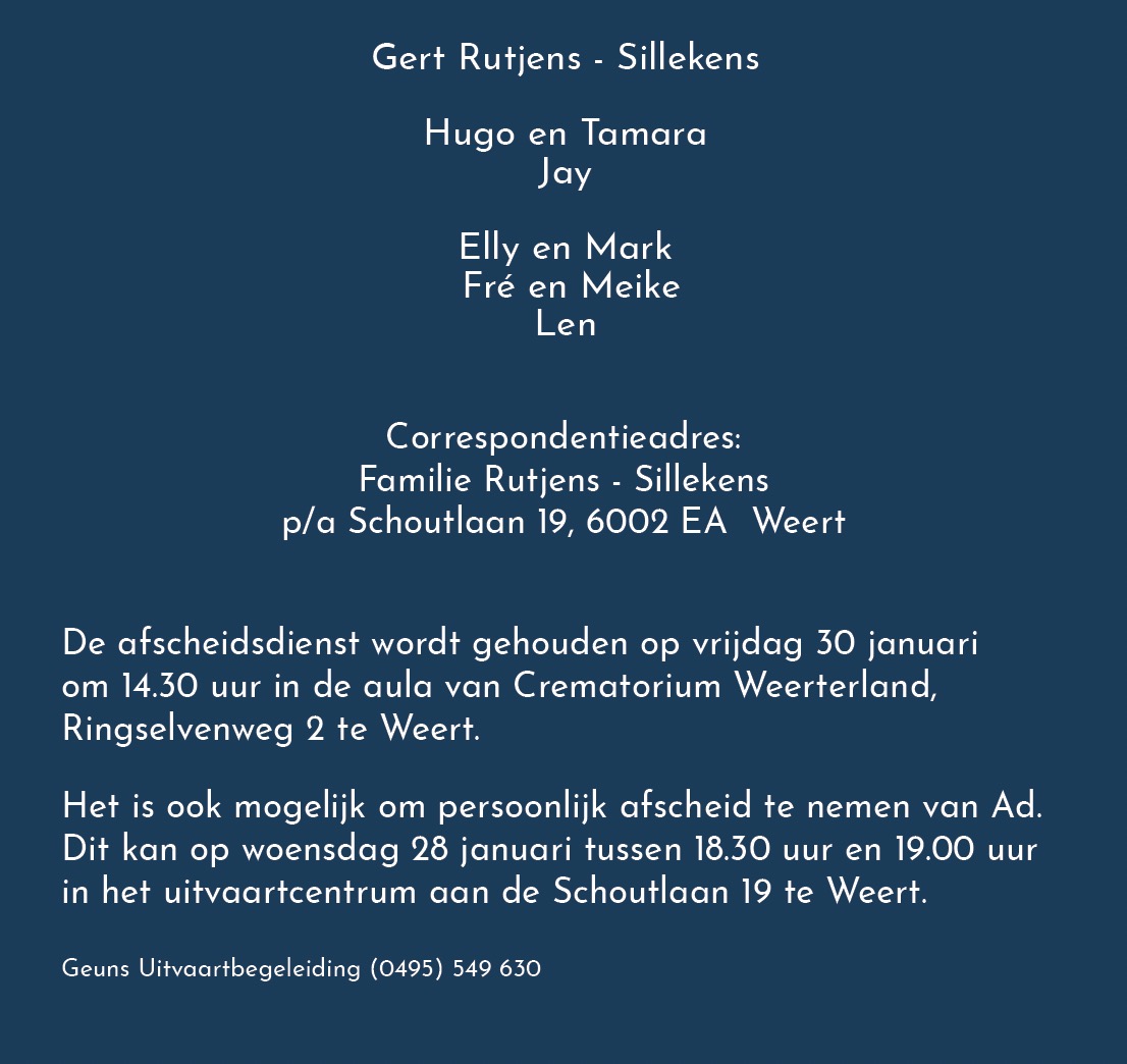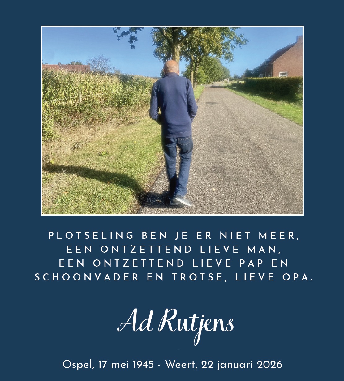 Heel veel sterkte gewenst met het verlies van Ad het was een lieve man.ik heb Ad leren kennen als chauffeur bij zorgboerderij de mildert.