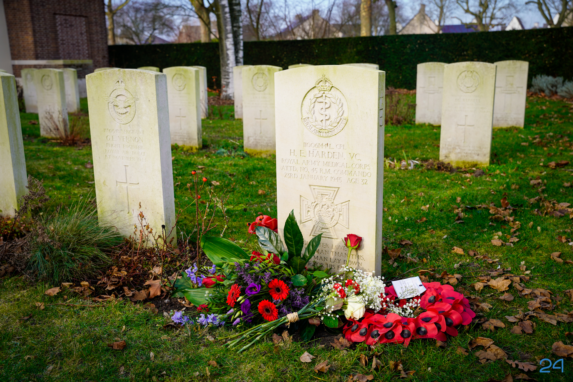 Eric Harden sneuvelde tijdens de gevechten in Brachterbeek. In de ijzige kou lagen gewonde Britse soldaten in het veld te wachten op hulp. Geneeskundig soldaat Harden ondernam drie pogingen om zijn kameraden te redden. Deze moedige daden moest hij uiteindelijk met zijn leven bekopen. Voor zijn uitzonderlijke moed werd hem na zijn overlijden de hoogste Britse militaire onderscheiding, het Victoria Cross, toegekend.