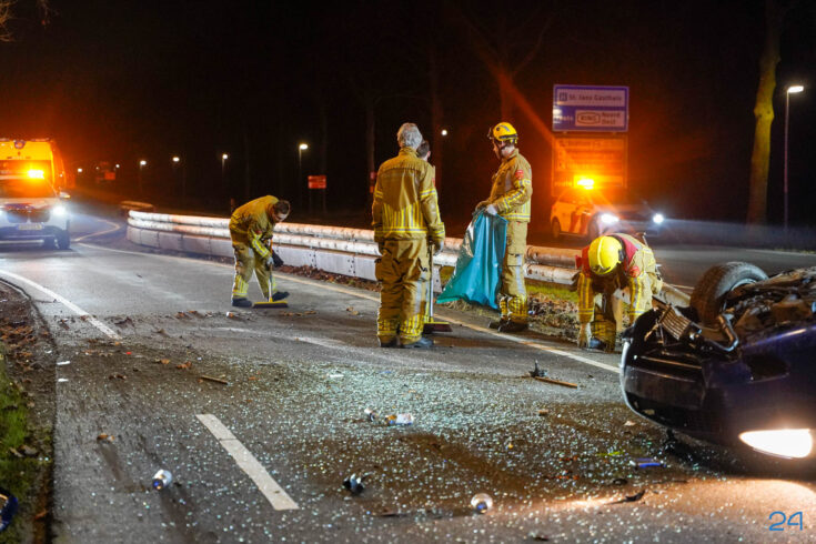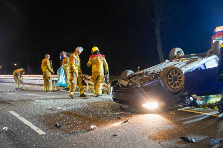 De bestuurder is na de rotonde bovenop de vangrail terechtgekomen en reed zo door tot ongeveer het einde van de vangrail. Daar sloeg de auto over de kop en kwam op zijn dak tot stilstand.