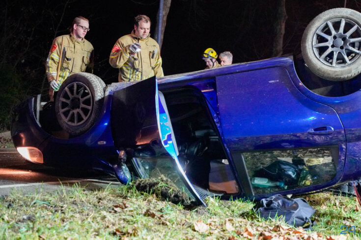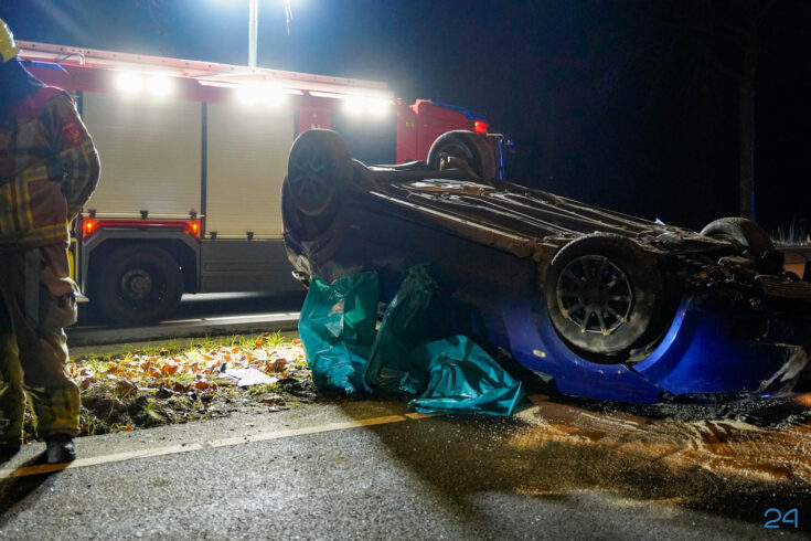 Vrijdagnacht rond 2.10 uur is een personenauto over de kop geslagen in een eenzijdig ongeval op de Eindhovenseweg in Weert, in de auto zat naast de bestuurder nog één inzittende.