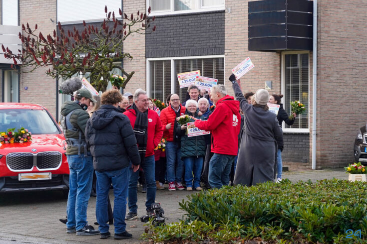 Vrijdagmiddag stond de Geenestraat volledig in het teken van de Postcode Loterij. Bewoners werden verrast door medewerkers in rode jasjes en gouden enveloppen. In totaal ontvingen 17 deelnemers een cheque.