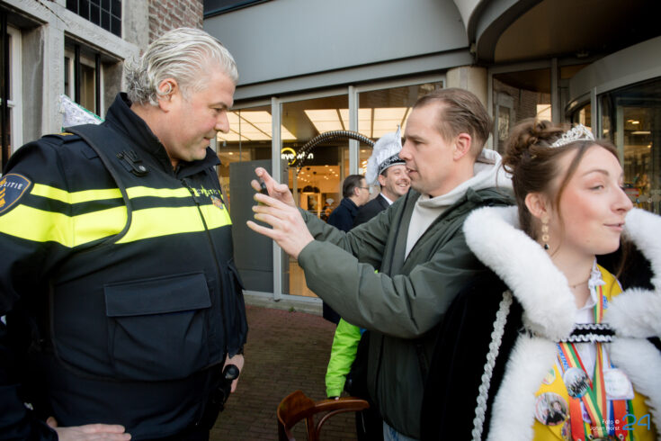 Onder toeziend oog van de burgemeesters van Weert, Nederweert en Leudal reikte teamchef Dave Glastra van politiebasisteam Weert de pins uit aan de prinsenparen.