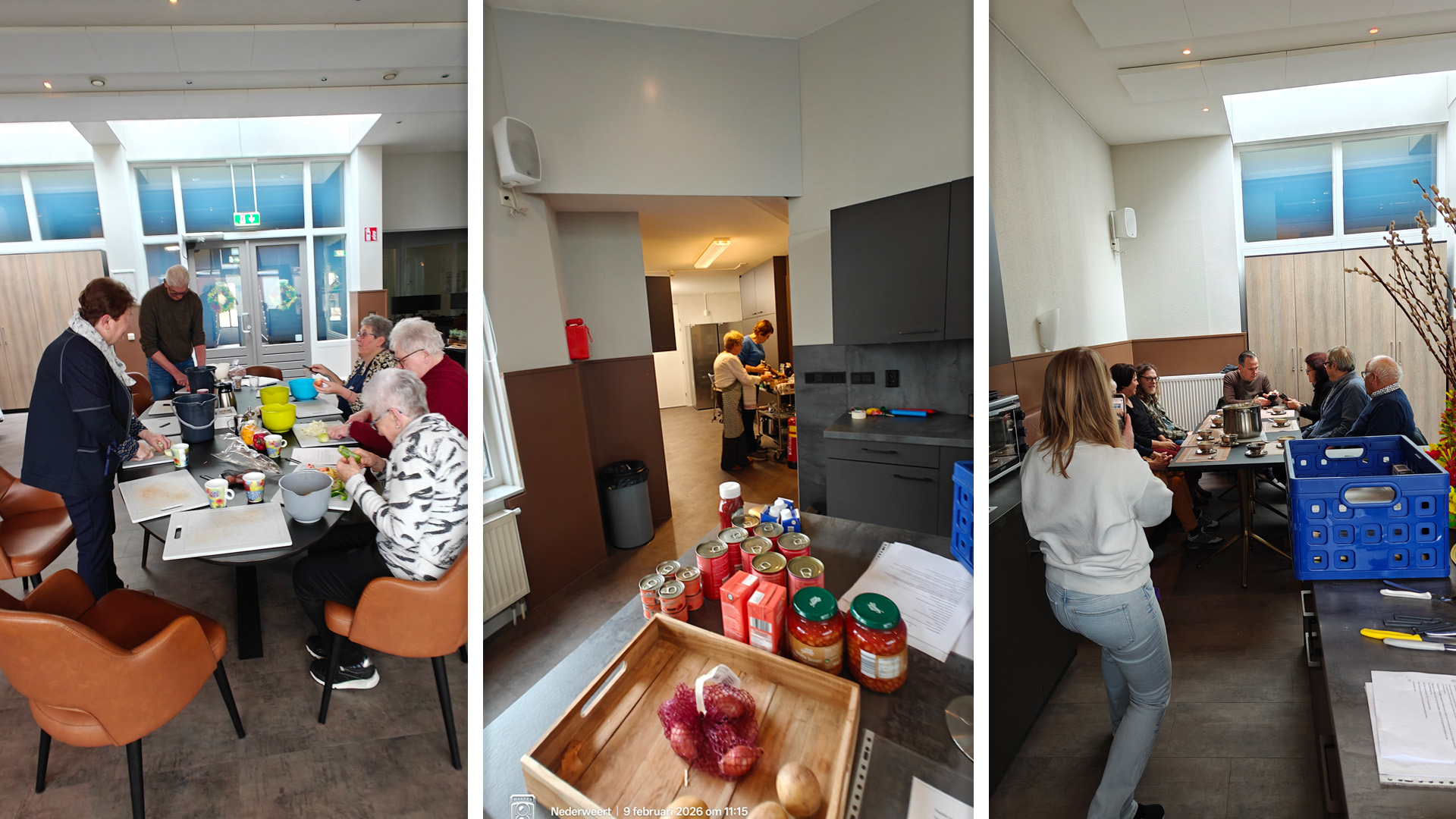 Ondertussen gingen de vaste deelnemers van Soep & Zo aan de slag met twee andere soepen: oudewijvensoep en paprika-tomatensoep. Er werd volop gesneden, schoongemaakt en geroerd. Alles ging in de juiste volgorde de pannen in. Tussendoor werd er gelachen en bijgepraat.