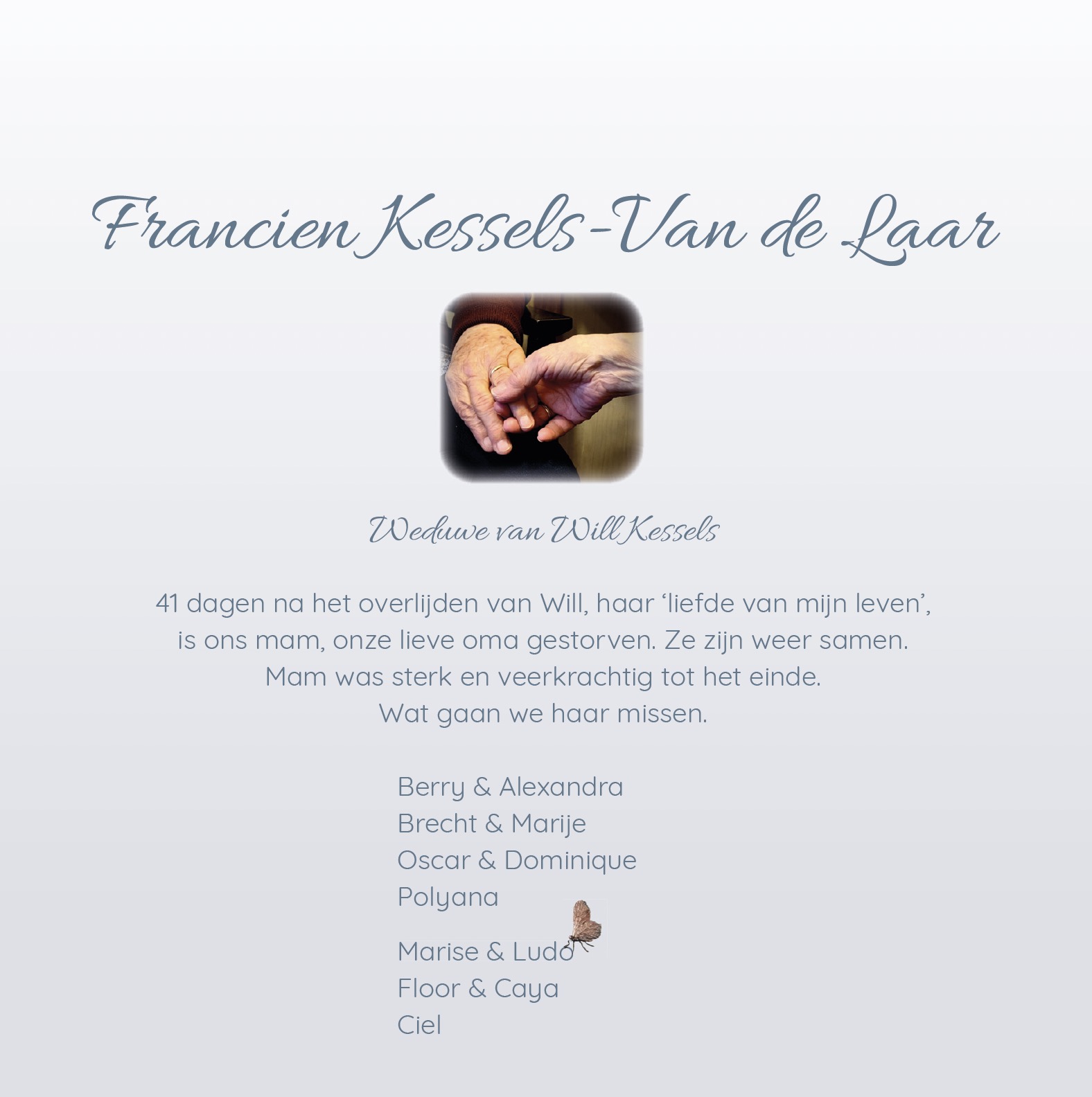 Overlijdensbericht | Francien Kessels – Van de Laar †