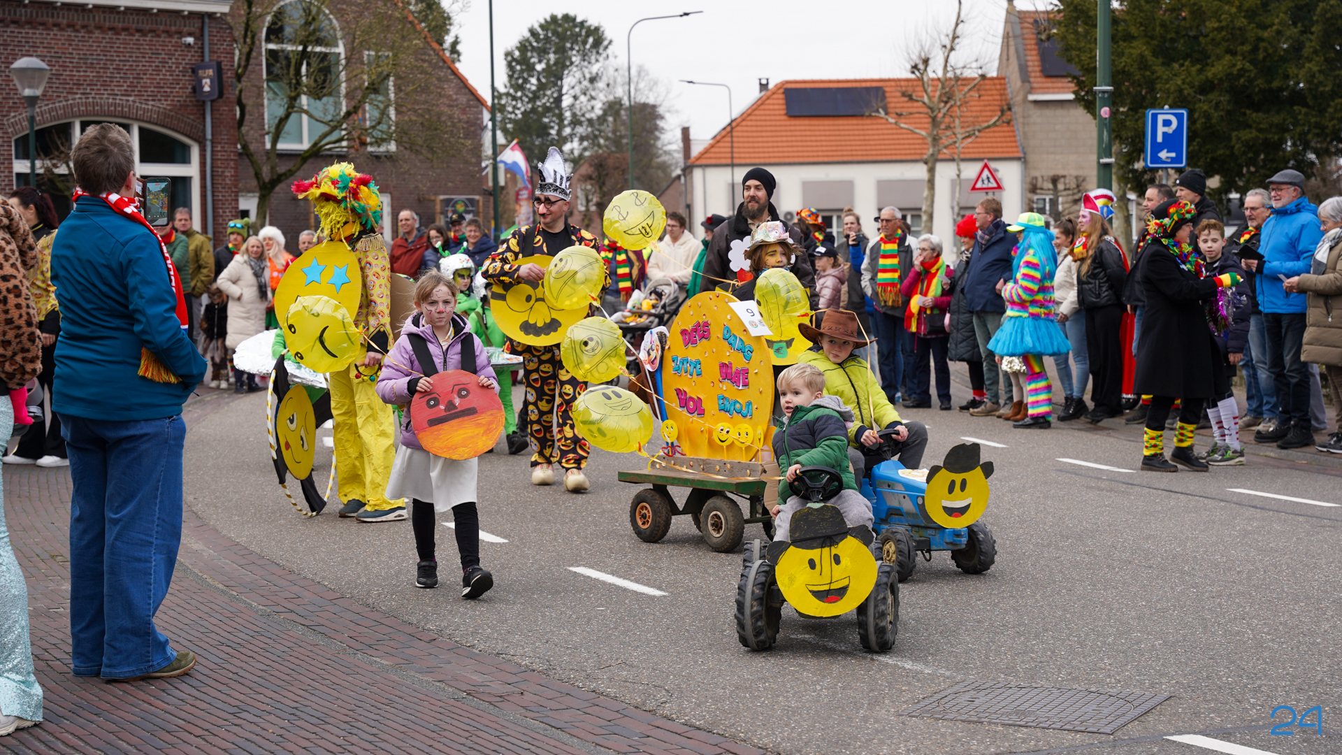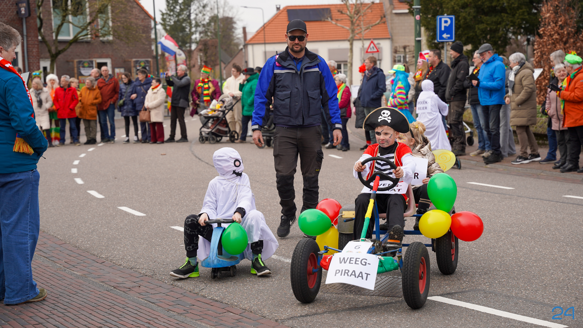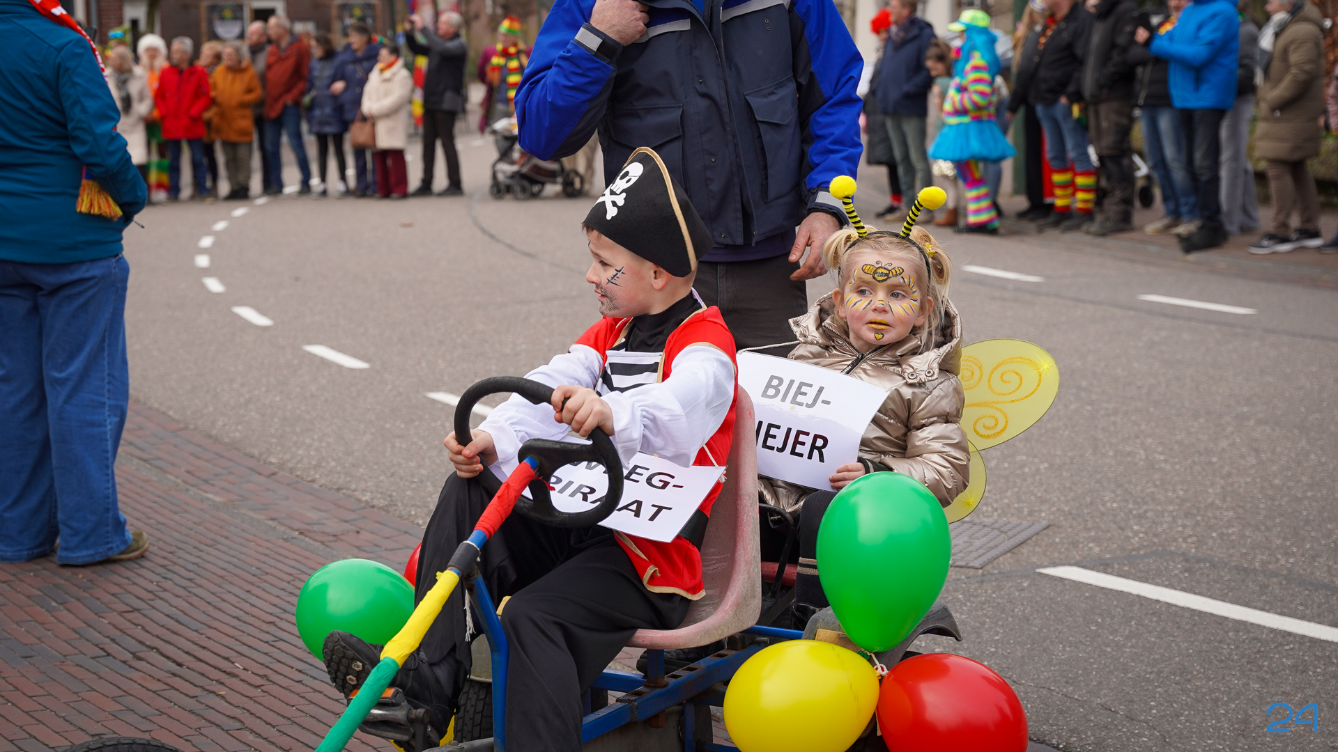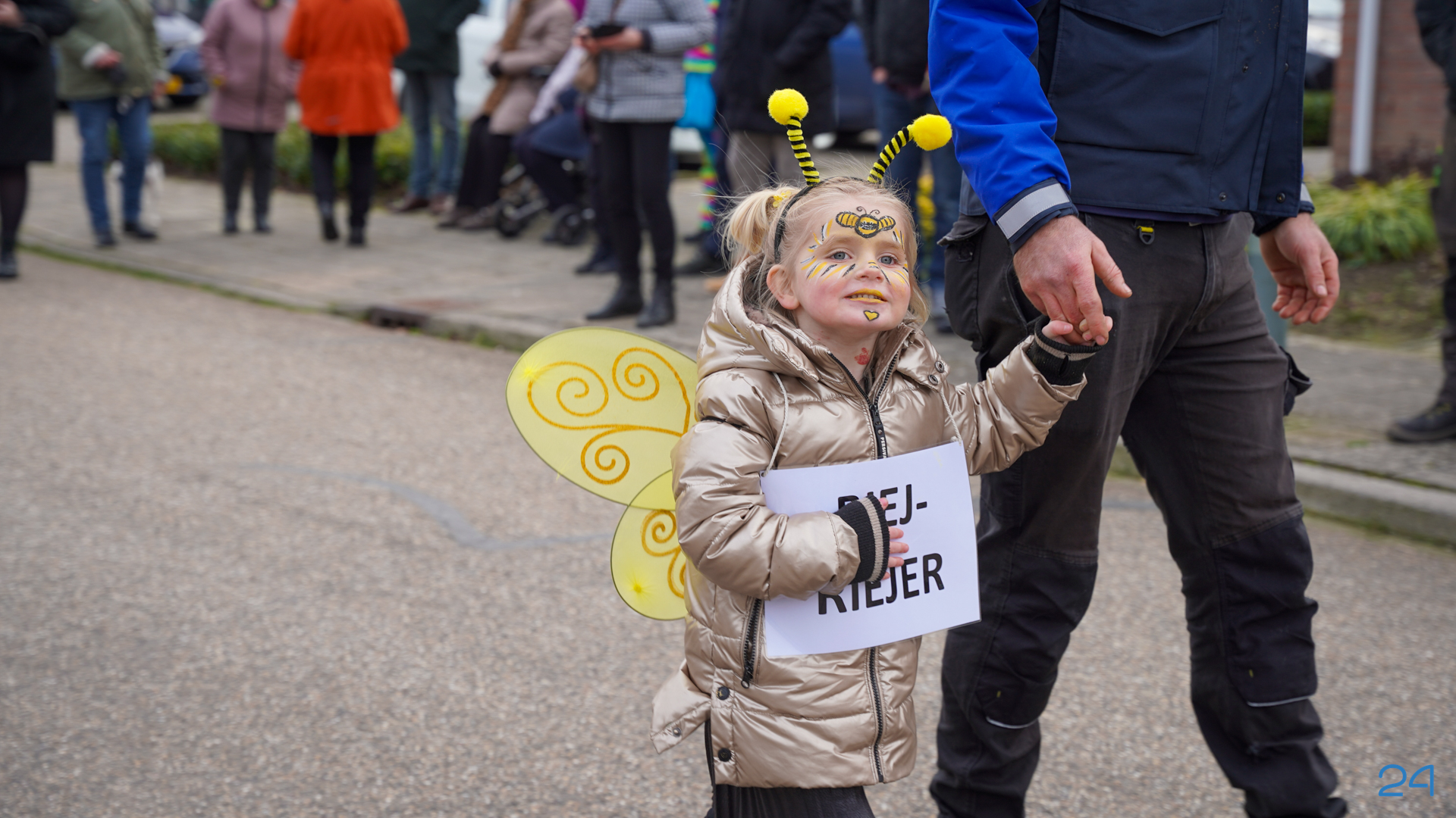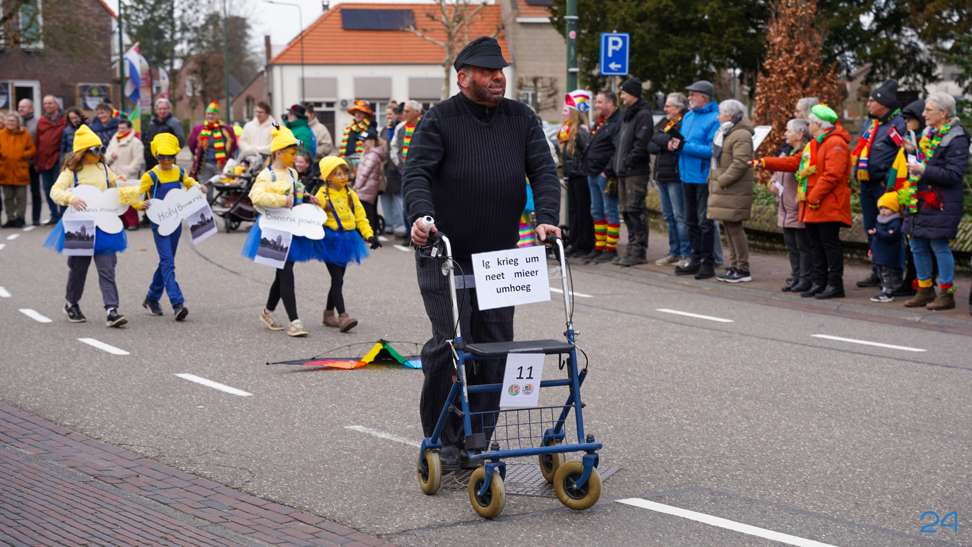 Langs de kant was het ook dit jaar weer gezellig druk. Tientallen inwoners, oud en jong, groot en klein, deden weer mee aan de bonte stoet. Er werd vanaf de zijlijn weer flink gelachen om de grappige spreuken en onderwerpen die de revue passeerde.