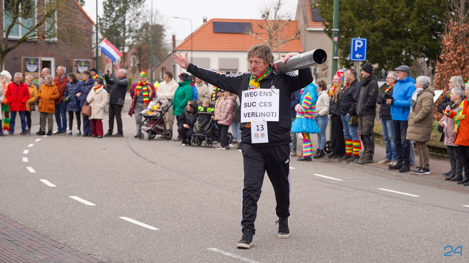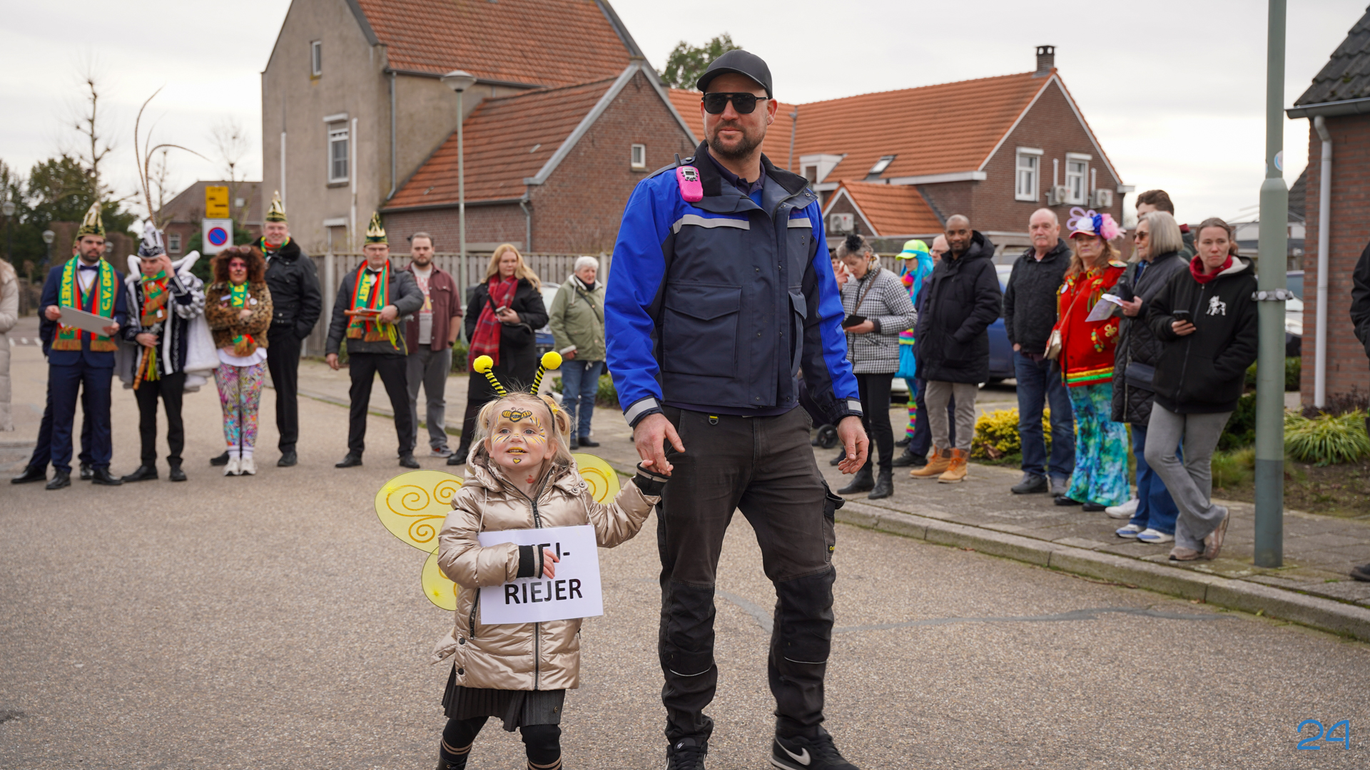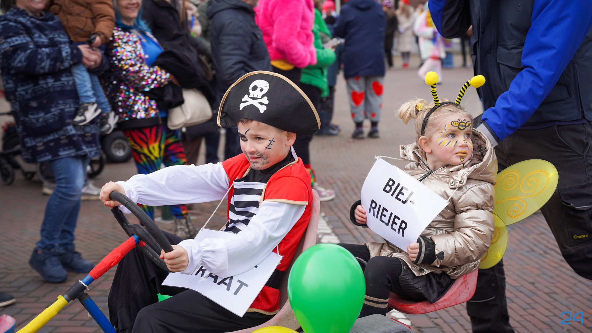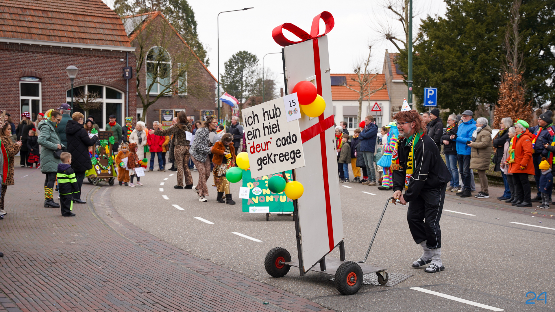 Langs de kant was het ook dit jaar weer gezellig druk. Tientallen inwoners, oud en jong, groot en klein, deden weer mee aan de bonte stoet. Er werd vanaf de zijlijn weer flink gelachen om de grappige spreuken en onderwerpen die de revue passeerde.
