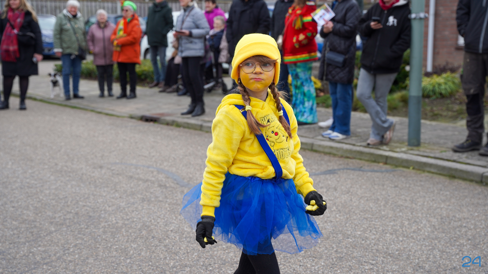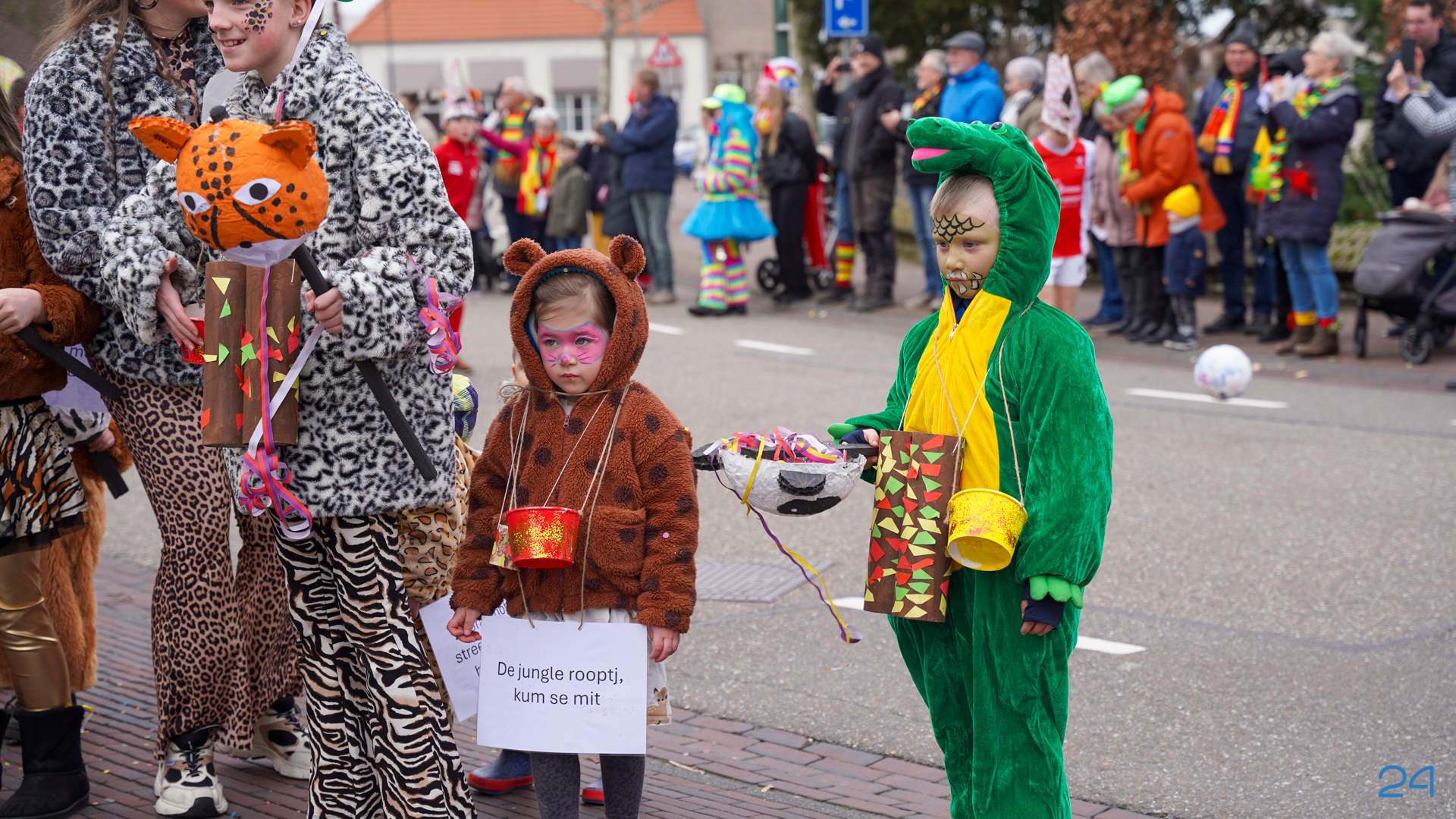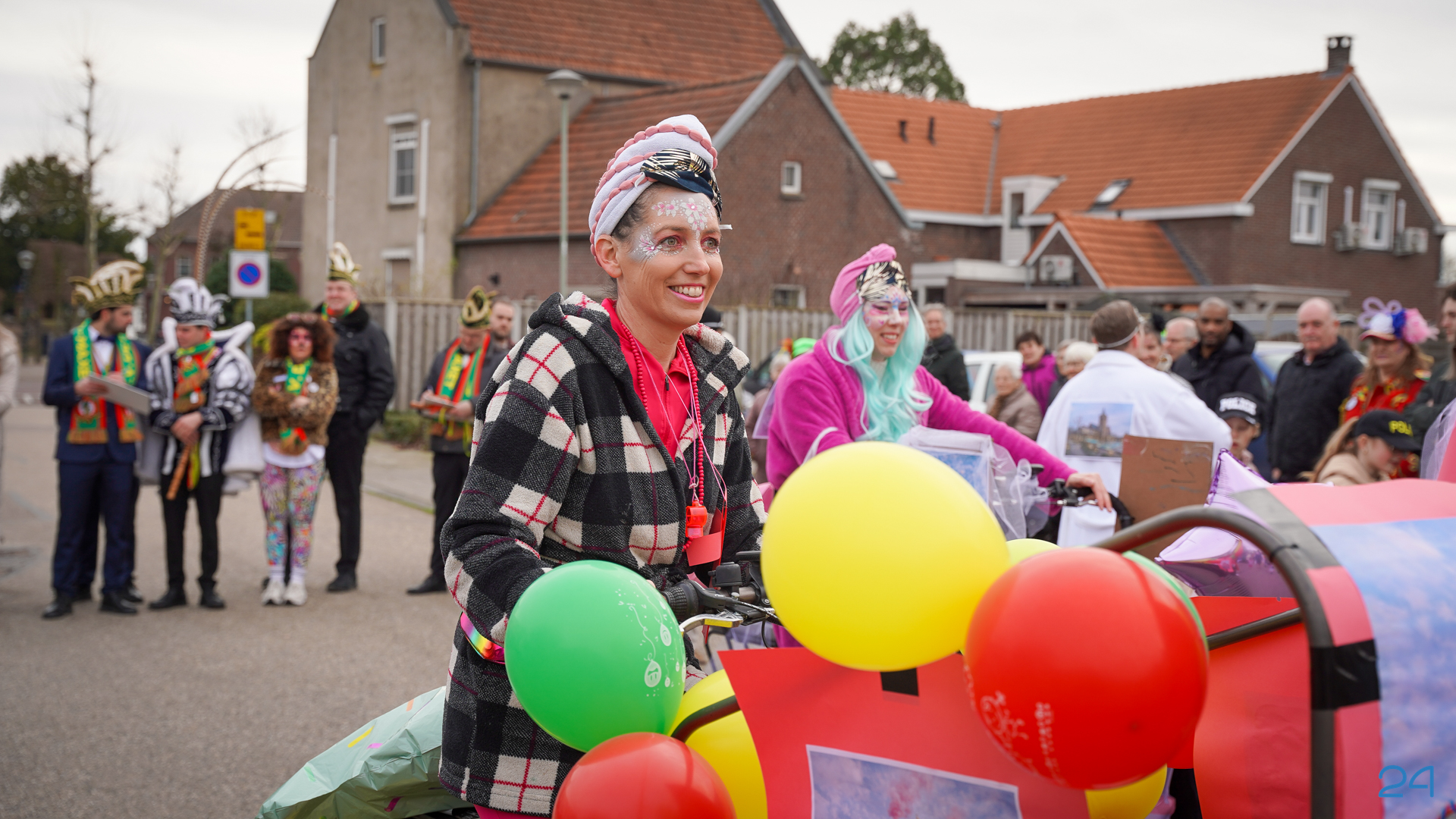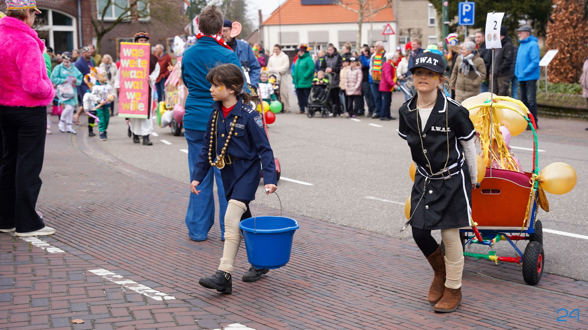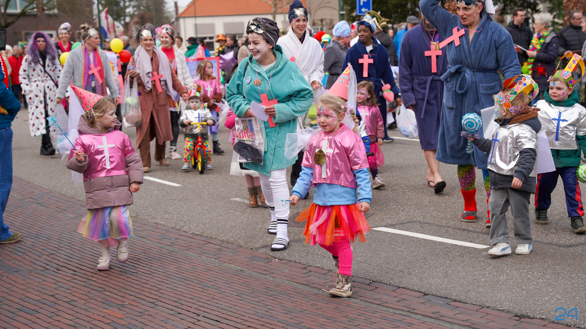 Langs de kant was het ook dit jaar weer gezellig druk. Tientallen inwoners, oud en jong, groot en klein, deden weer mee aan de bonte stoet. Er werd vanaf de zijlijn weer flink gelachen om de grappige spreuken en onderwerpen die de revue passeerde.