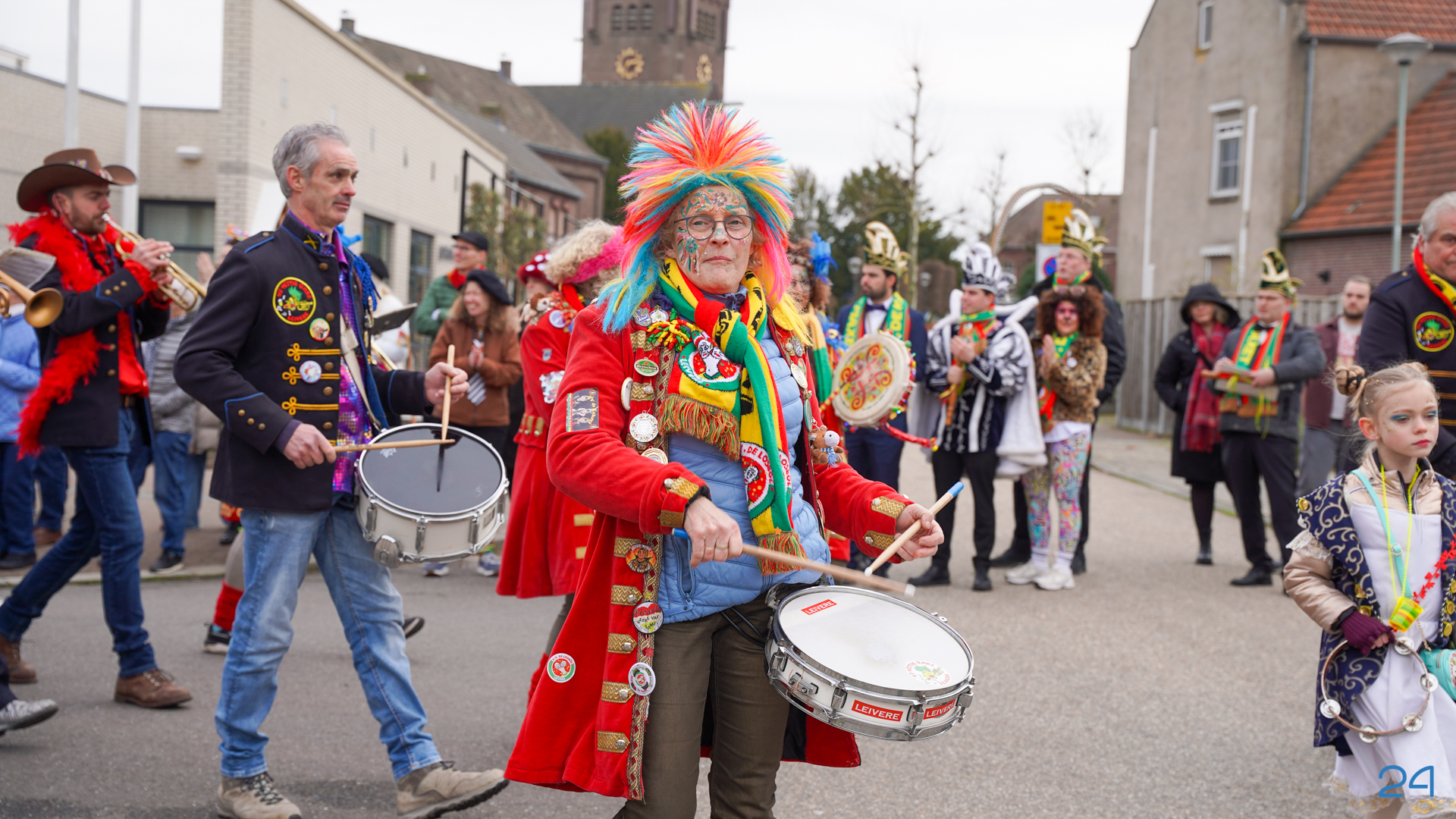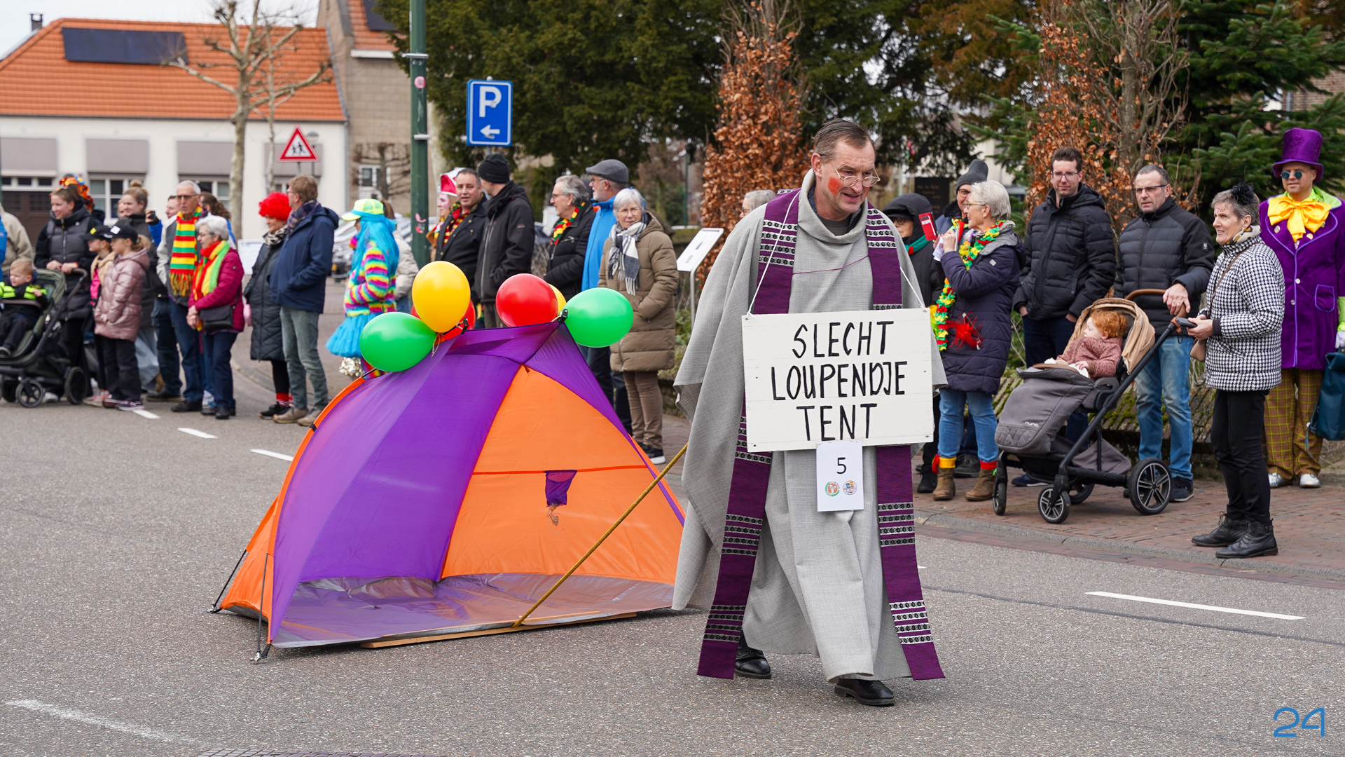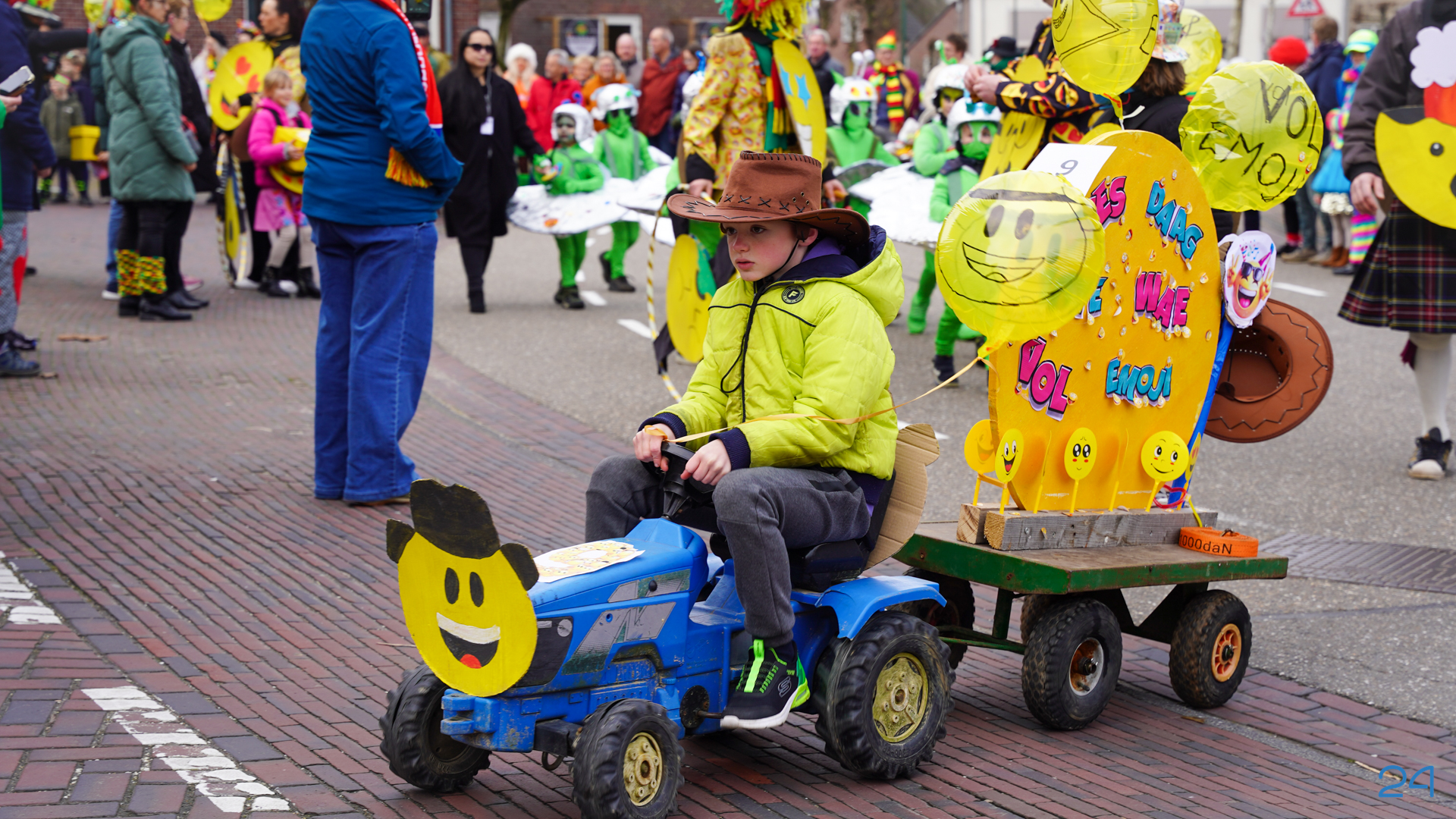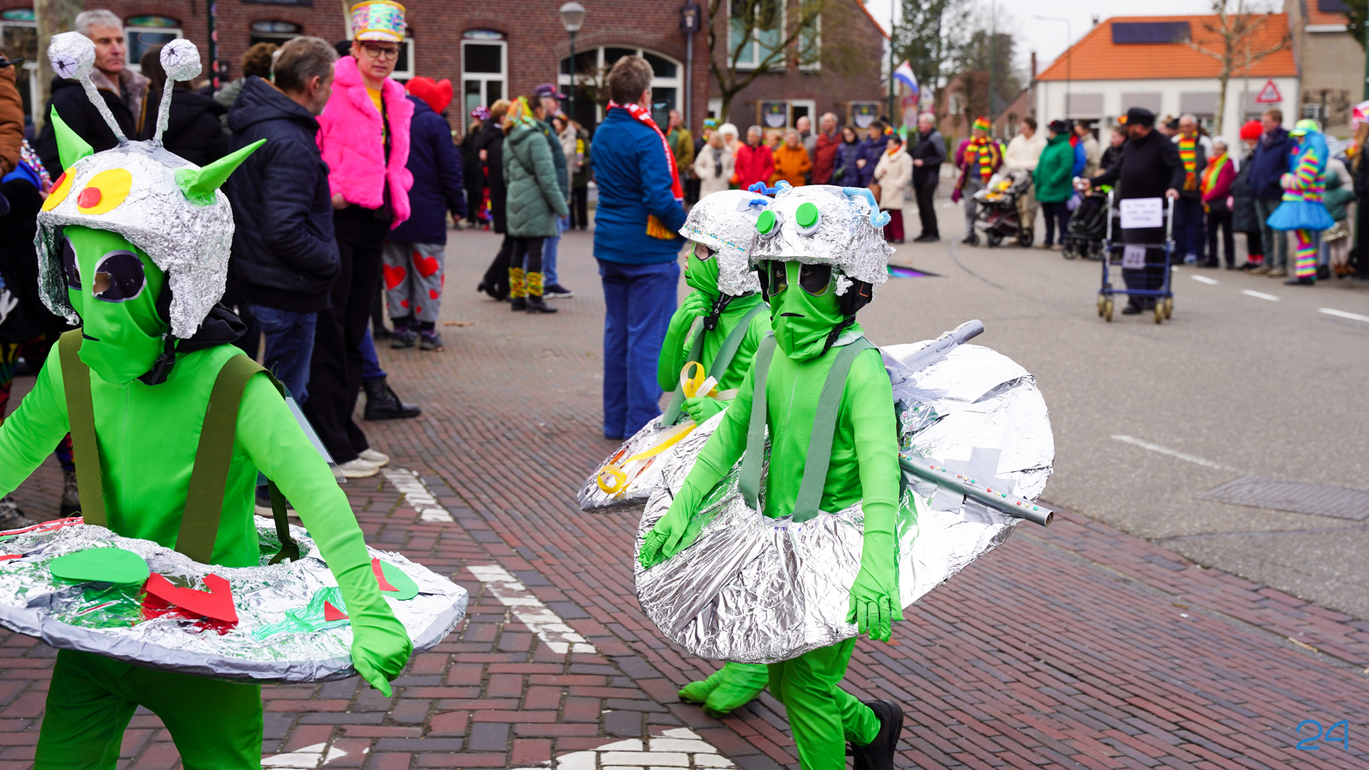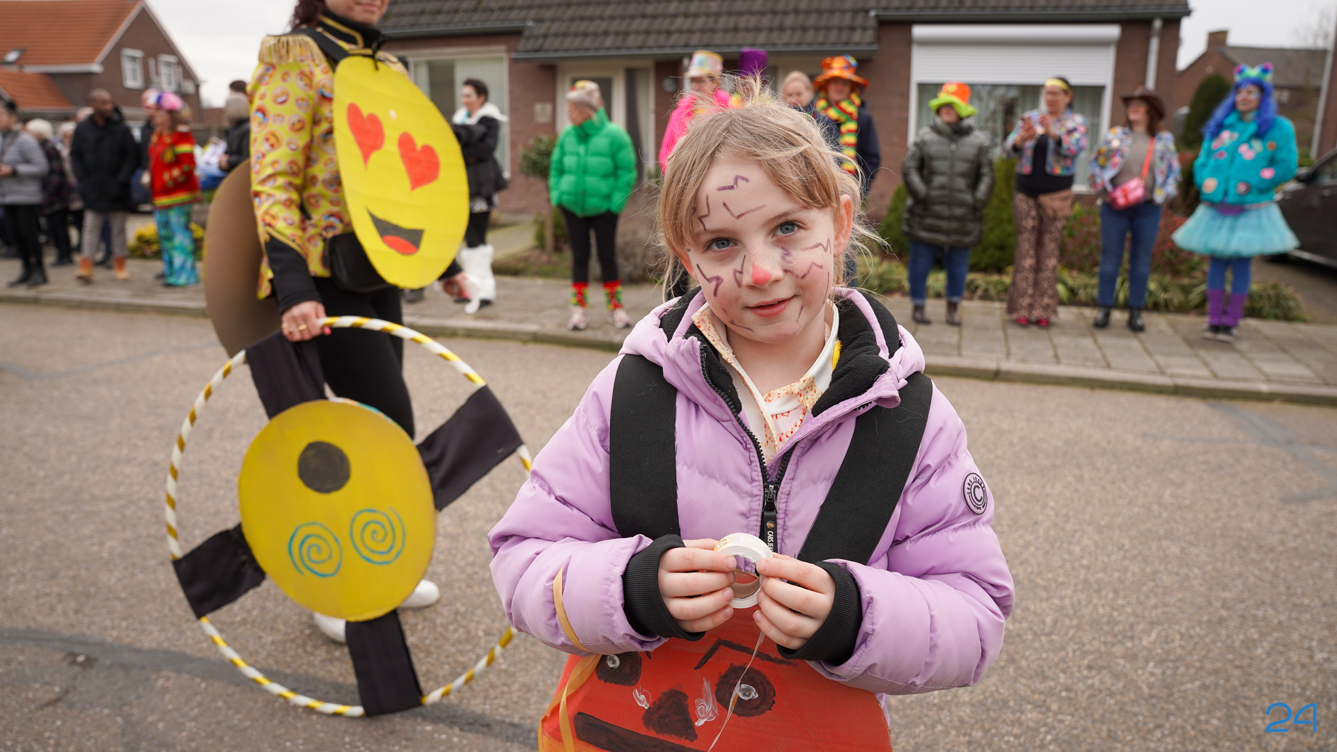 Langs de kant was het ook dit jaar weer gezellig druk. Tientallen inwoners, oud en jong, groot en klein, deden weer mee aan de bonte stoet. Er werd vanaf de zijlijn weer flink gelachen om de grappige spreuken en onderwerpen die de revue passeerde.