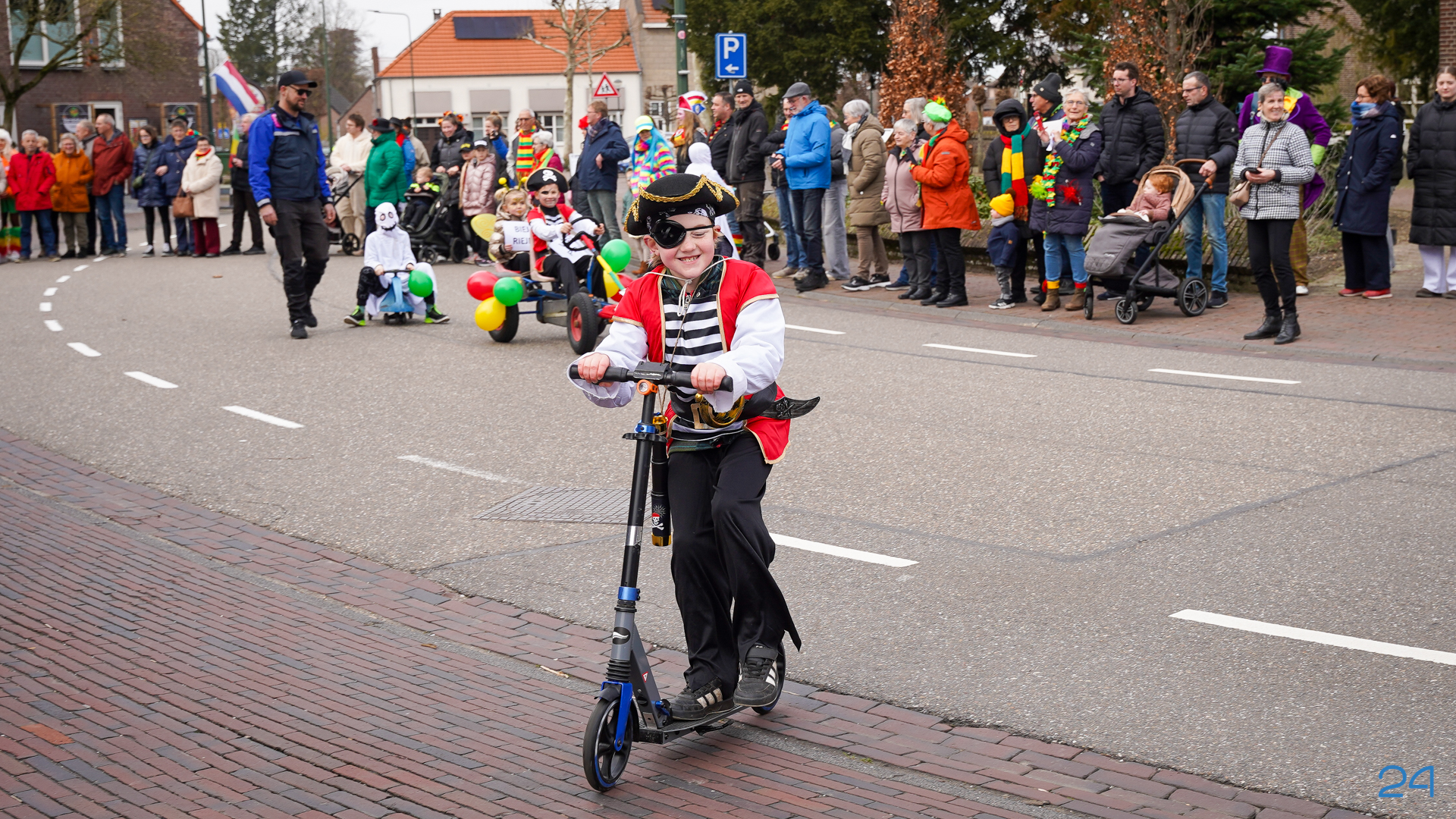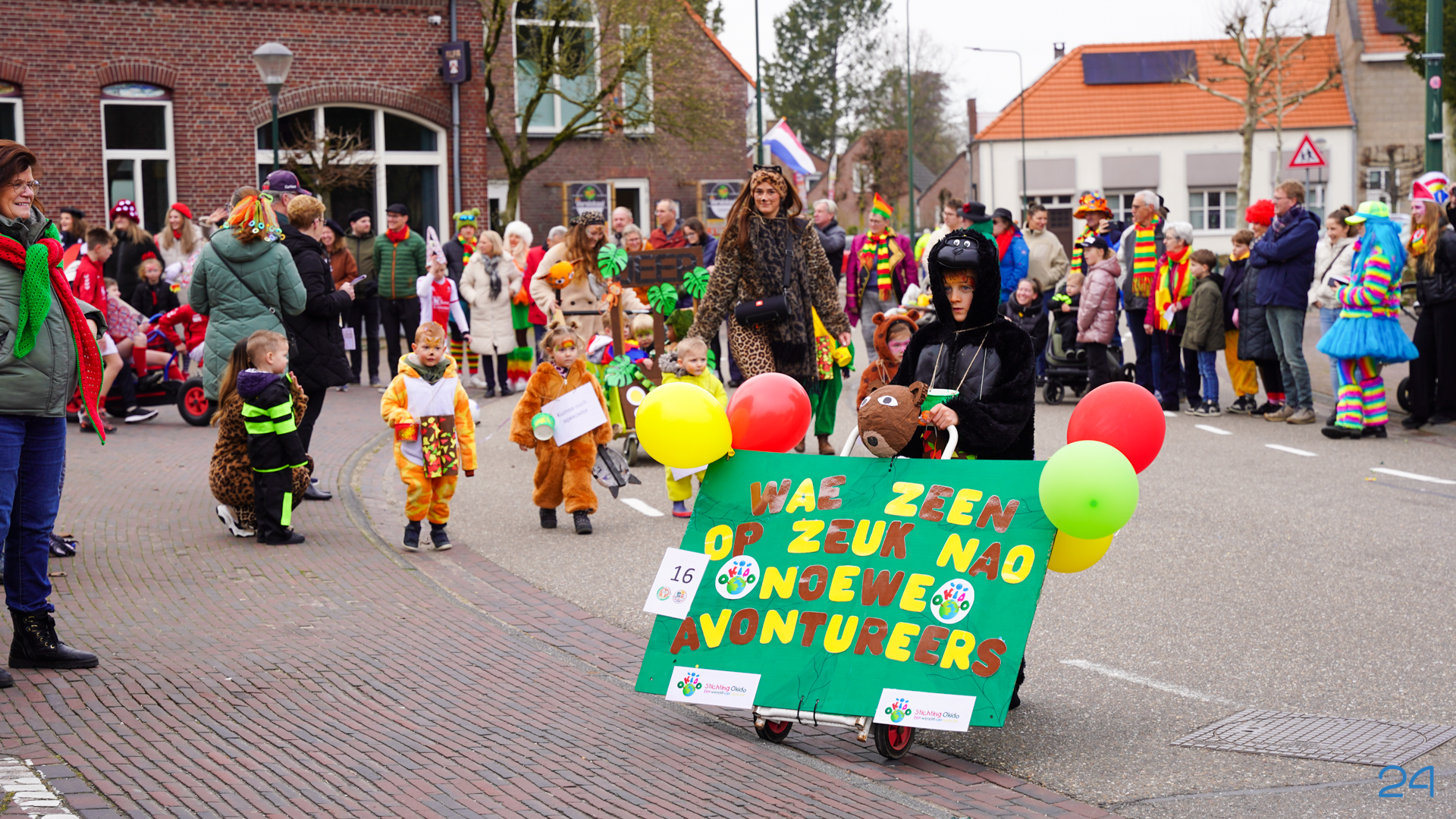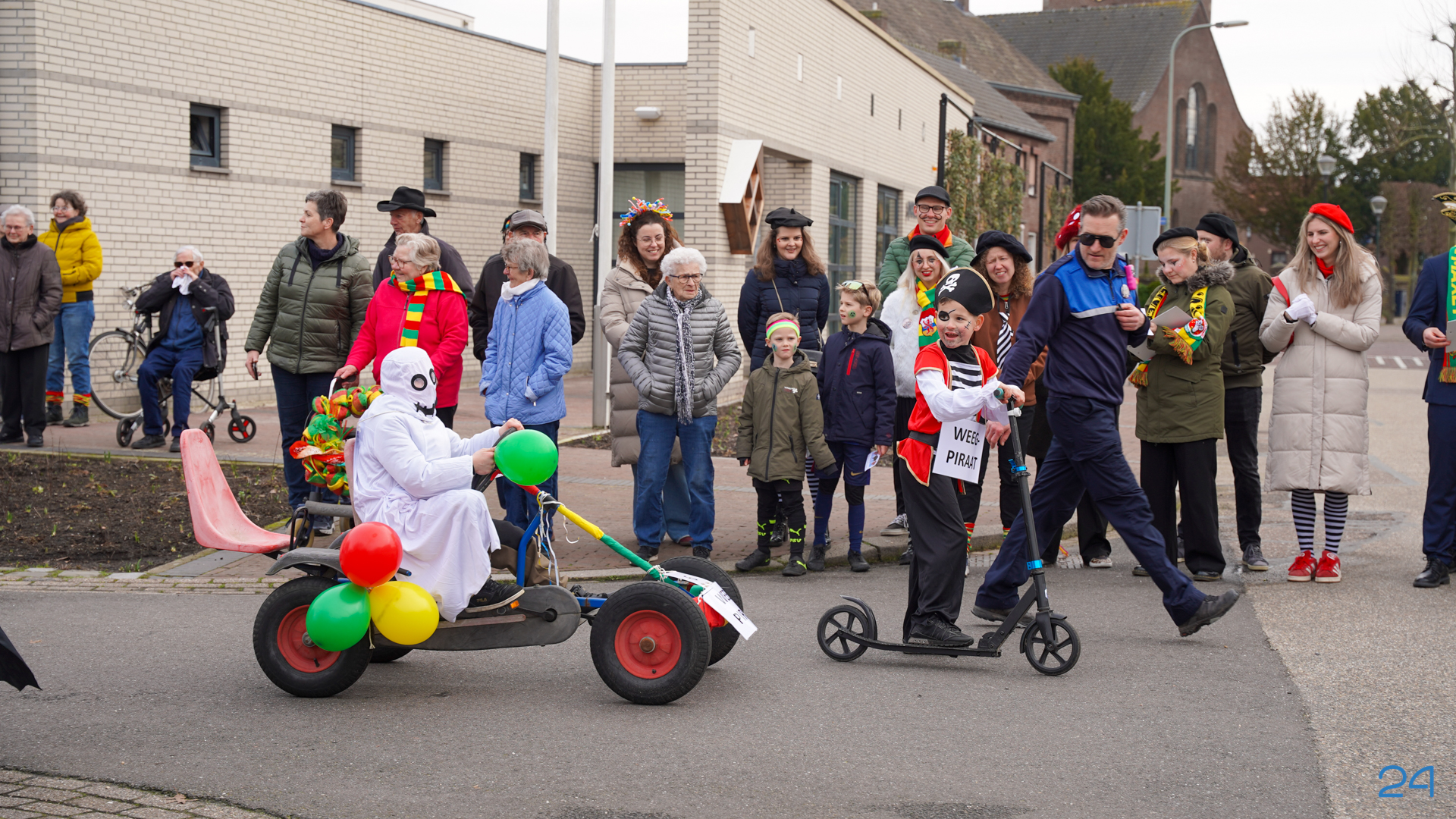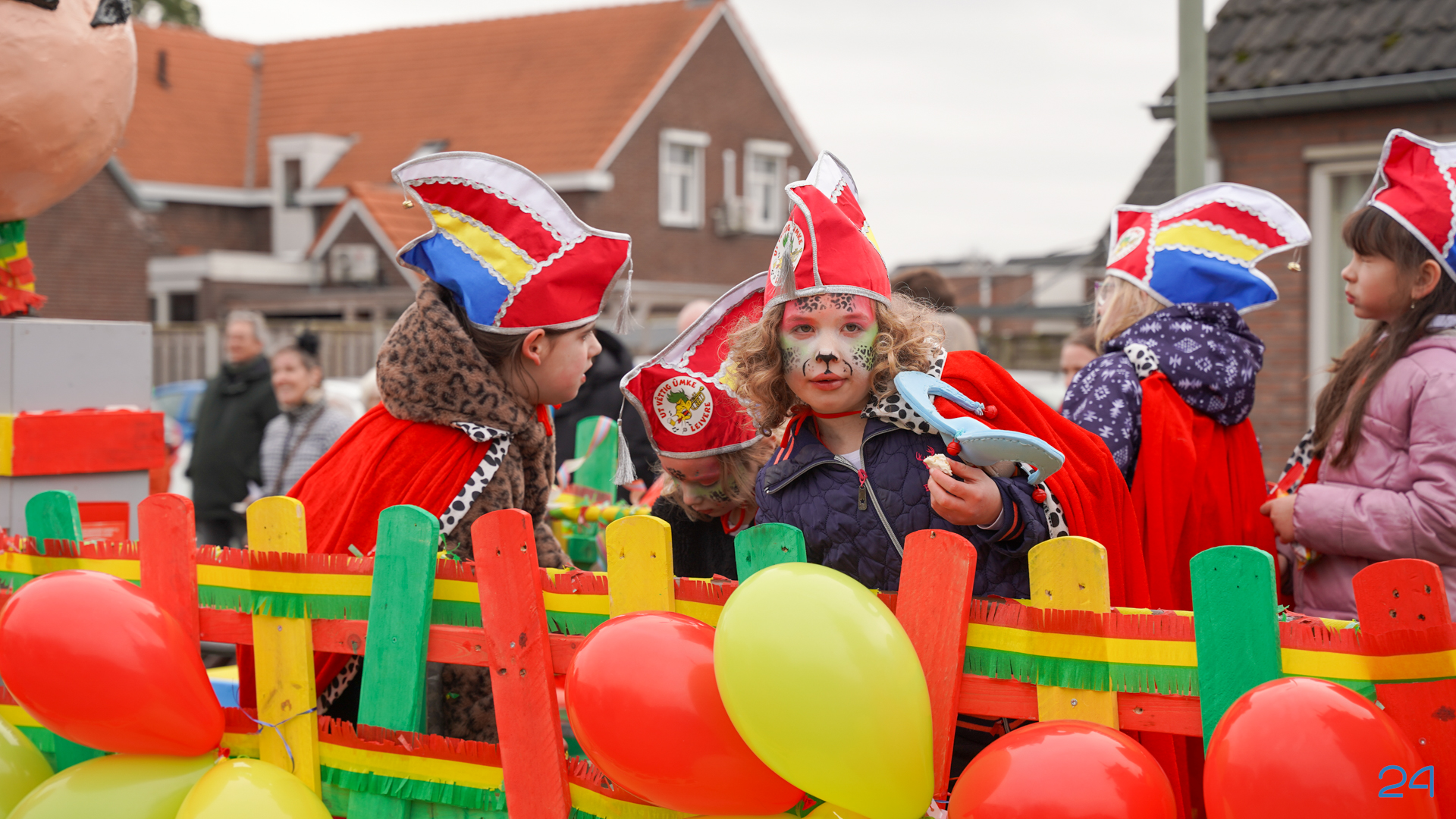 Langs de kant was het ook dit jaar weer gezellig druk. Tientallen inwoners, oud en jong, groot en klein, deden weer mee aan de bonte stoet. Er werd vanaf de zijlijn weer flink gelachen om de grappige spreuken en onderwerpen die de revue passeerde.