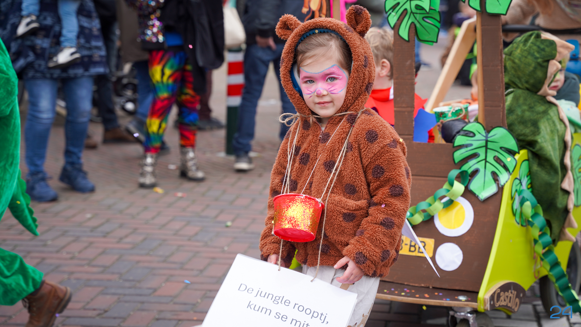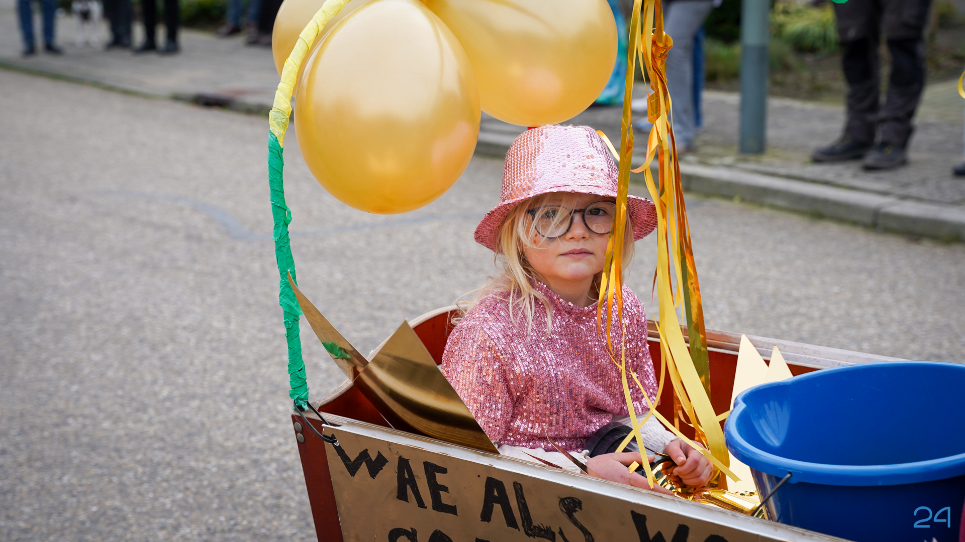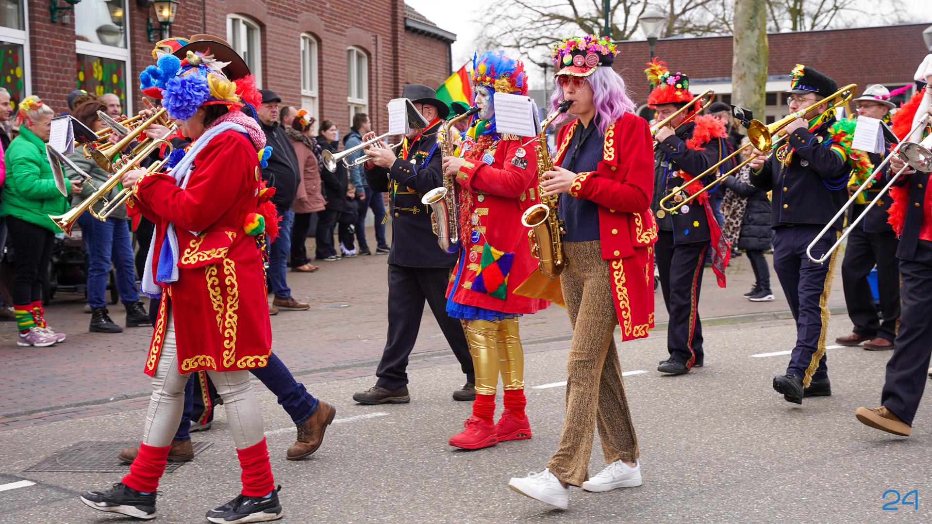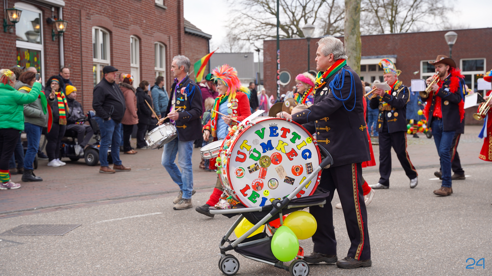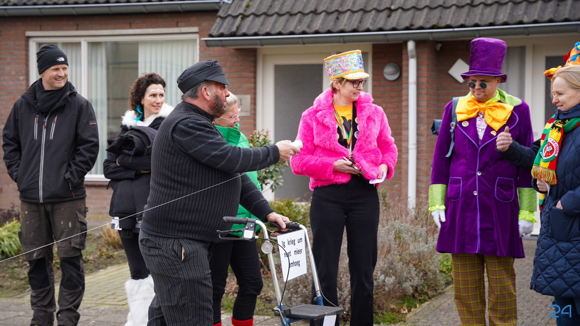 Langs de kant was het ook dit jaar weer gezellig druk. Tientallen inwoners, oud en jong, groot en klein, deden weer mee aan de bonte stoet. Er werd vanaf de zijlijn weer flink gelachen om de grappige spreuken en onderwerpen die de revue passeerde.