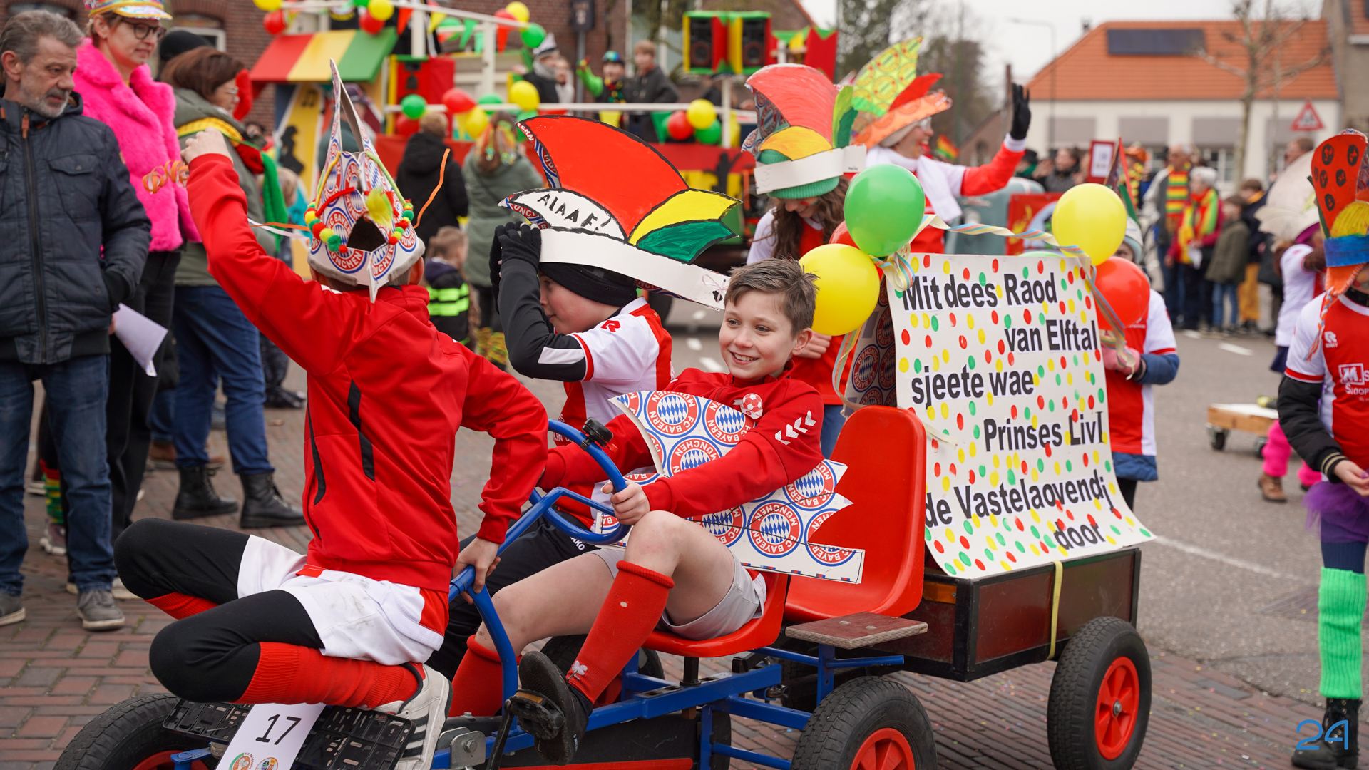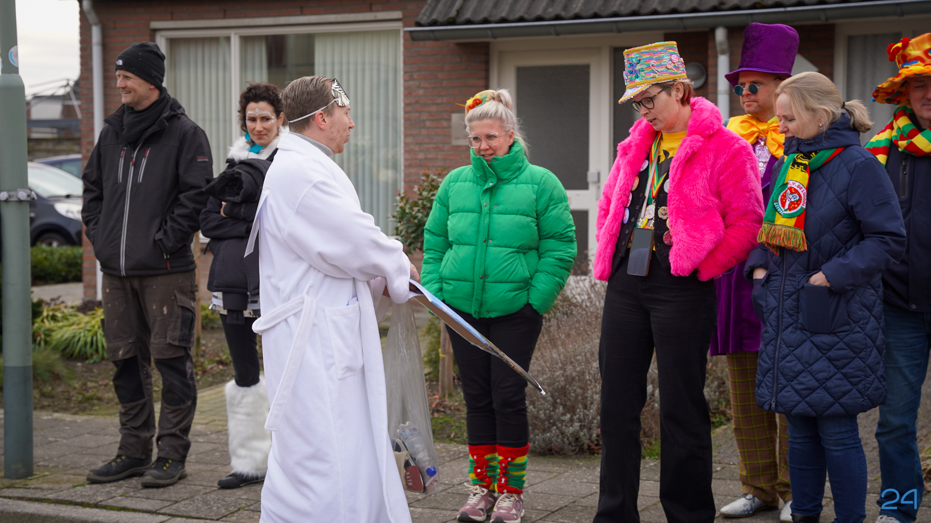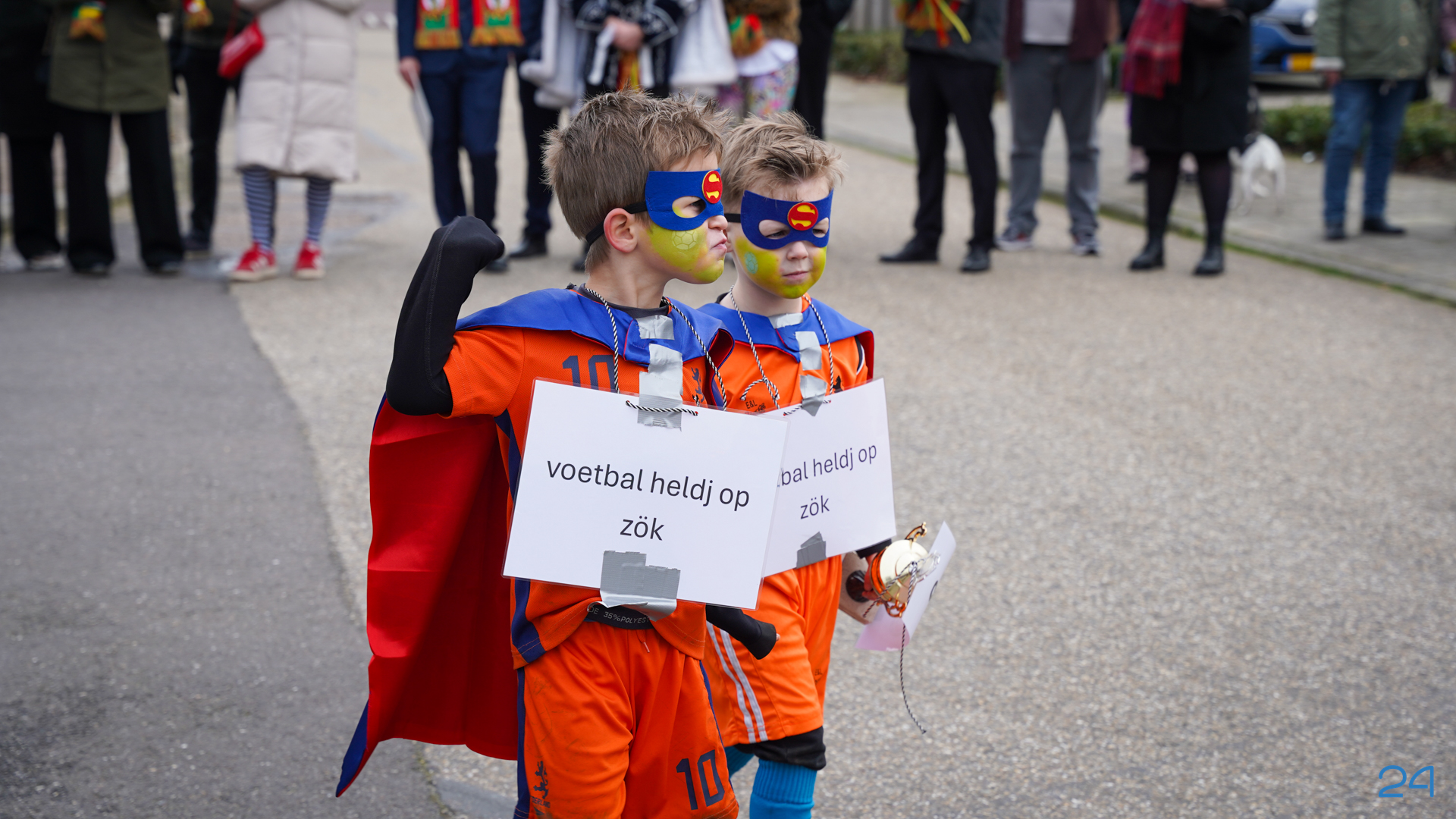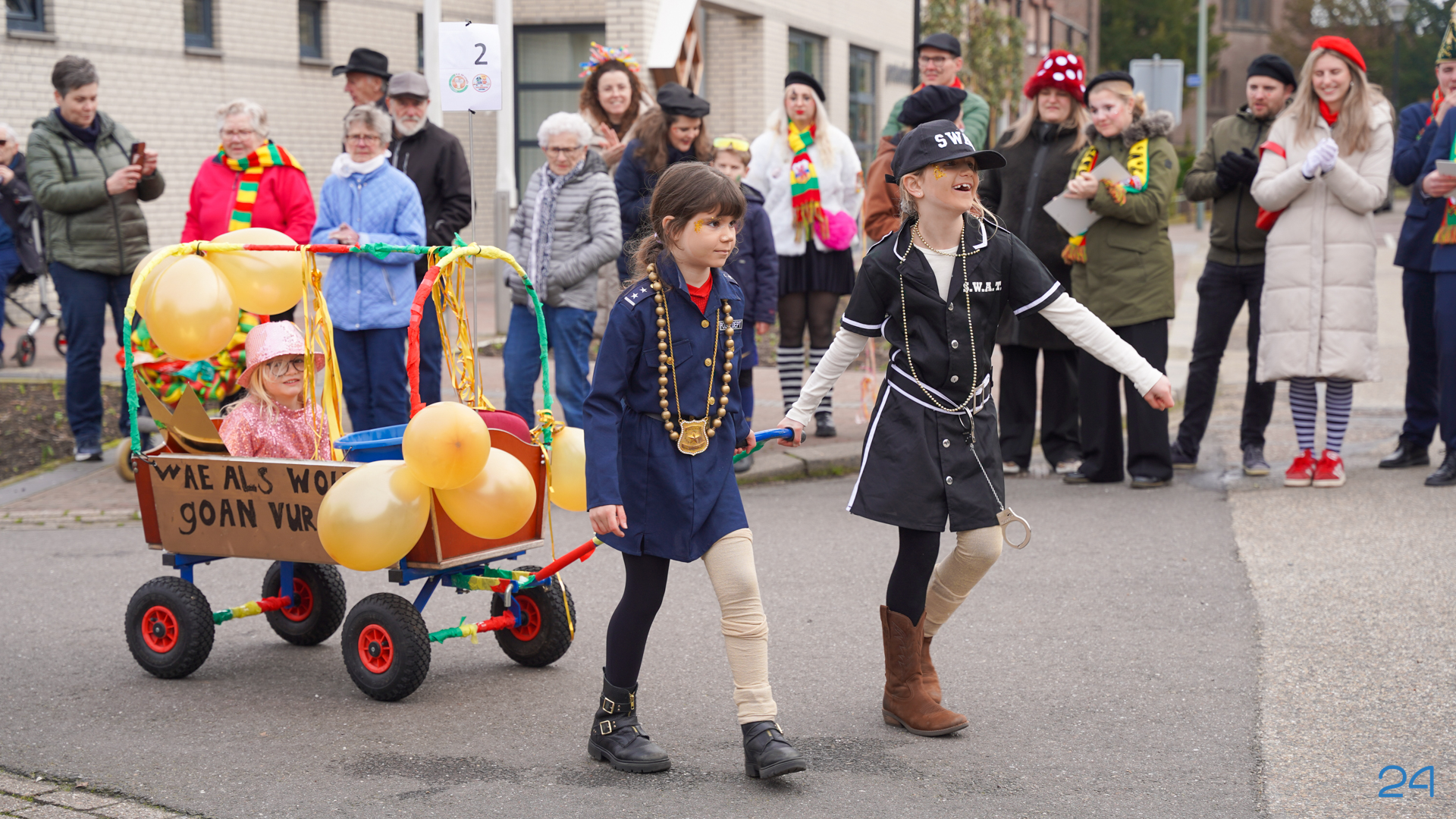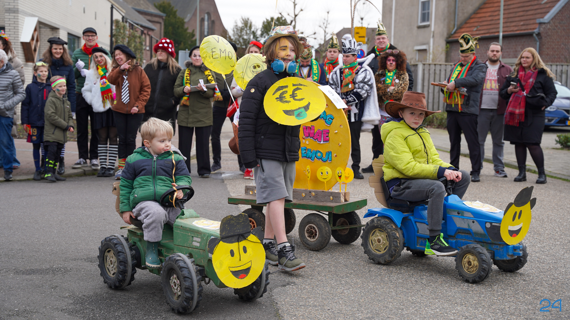 Langs de kant was het ook dit jaar weer gezellig druk. Tientallen inwoners, oud en jong, groot en klein, deden weer mee aan de bonte stoet. Er werd vanaf de zijlijn weer flink gelachen om de grappige spreuken en onderwerpen die de revue passeerde.