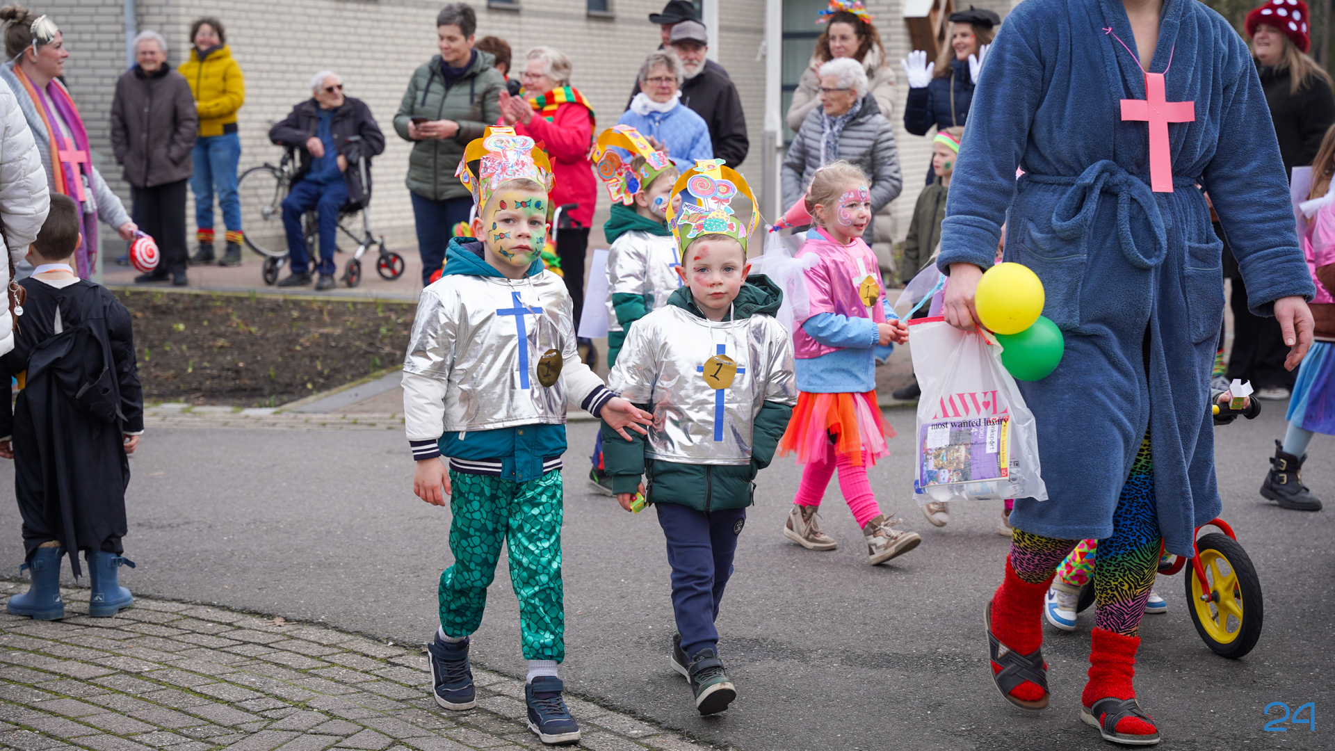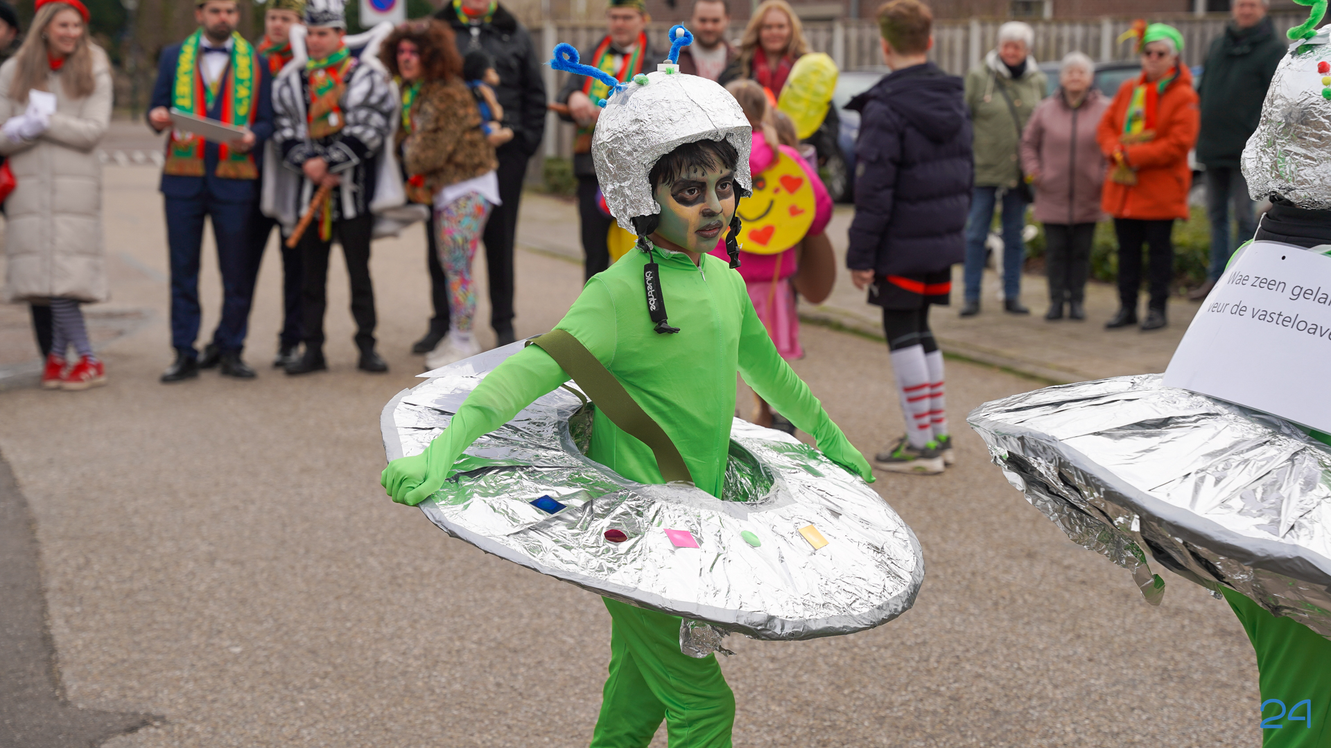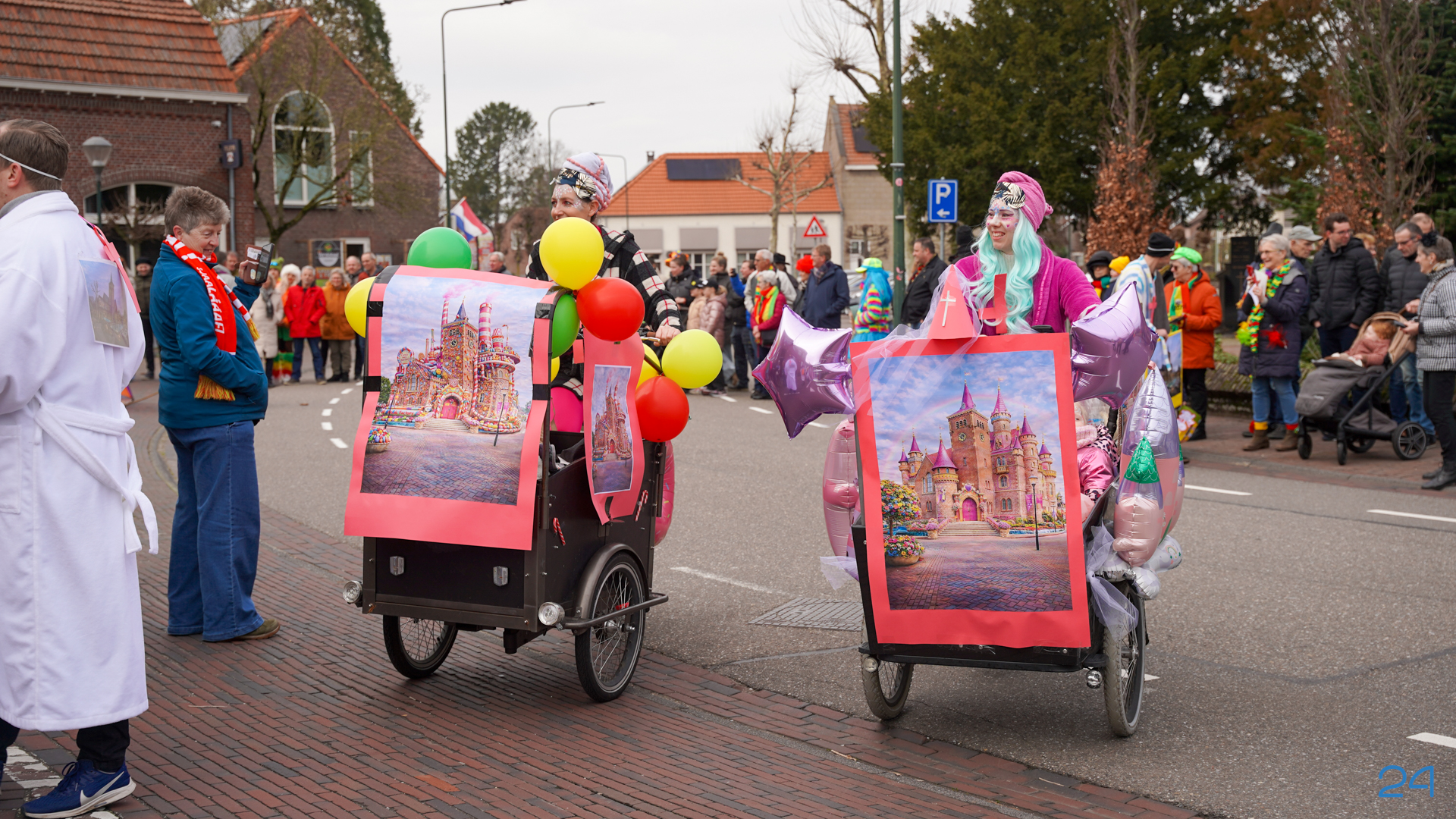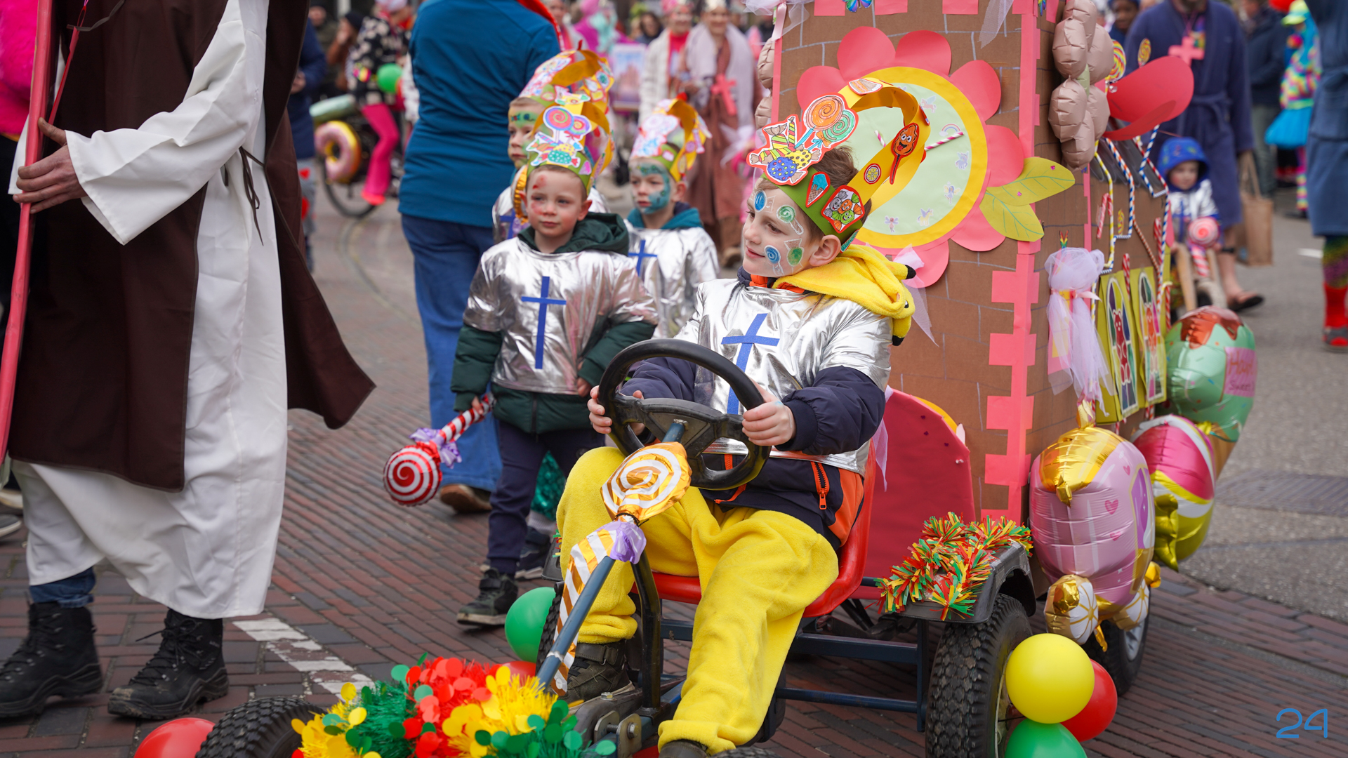 Langs de kant was het ook dit jaar weer gezellig druk. Tientallen inwoners, oud en jong, groot en klein, deden weer mee aan de bonte stoet. Er werd vanaf de zijlijn weer flink gelachen om de grappige spreuken en onderwerpen die de revue passeerde.