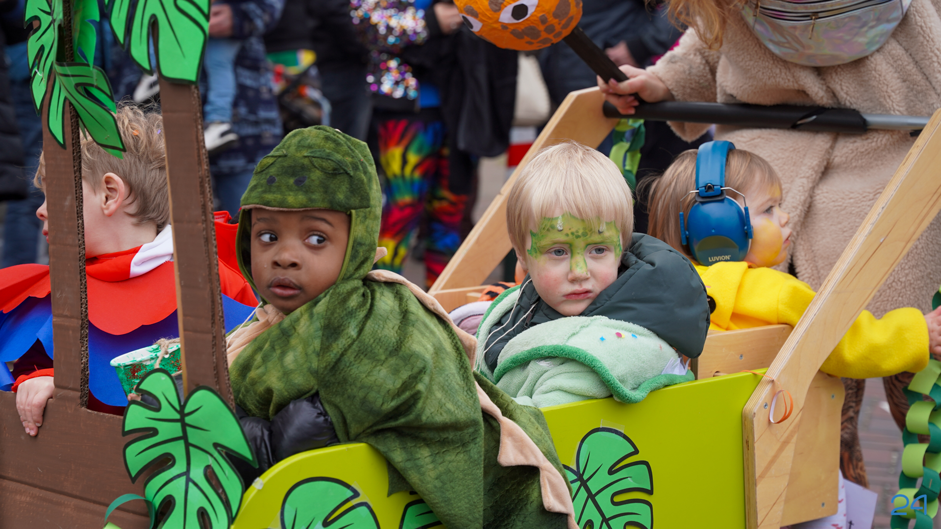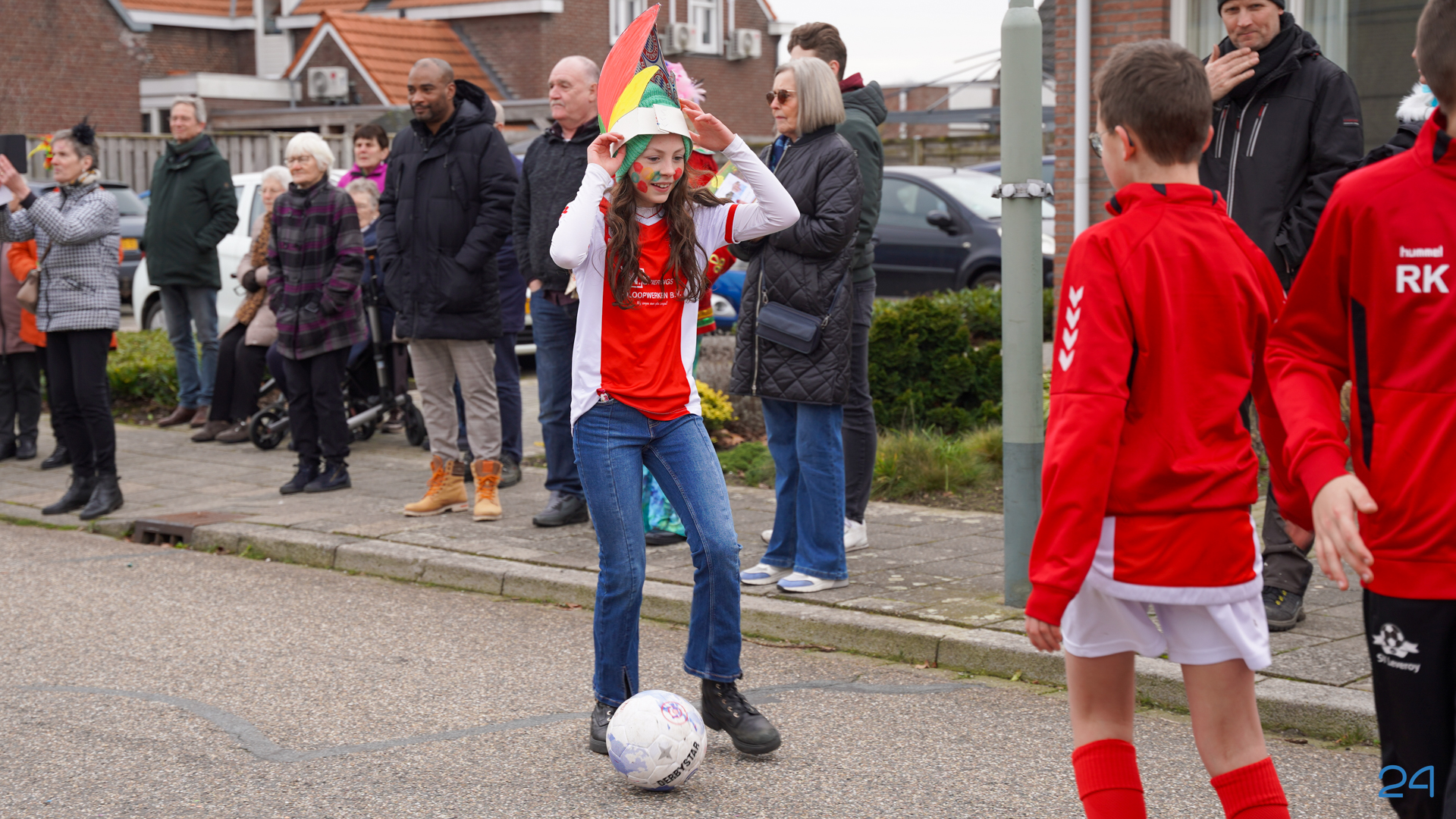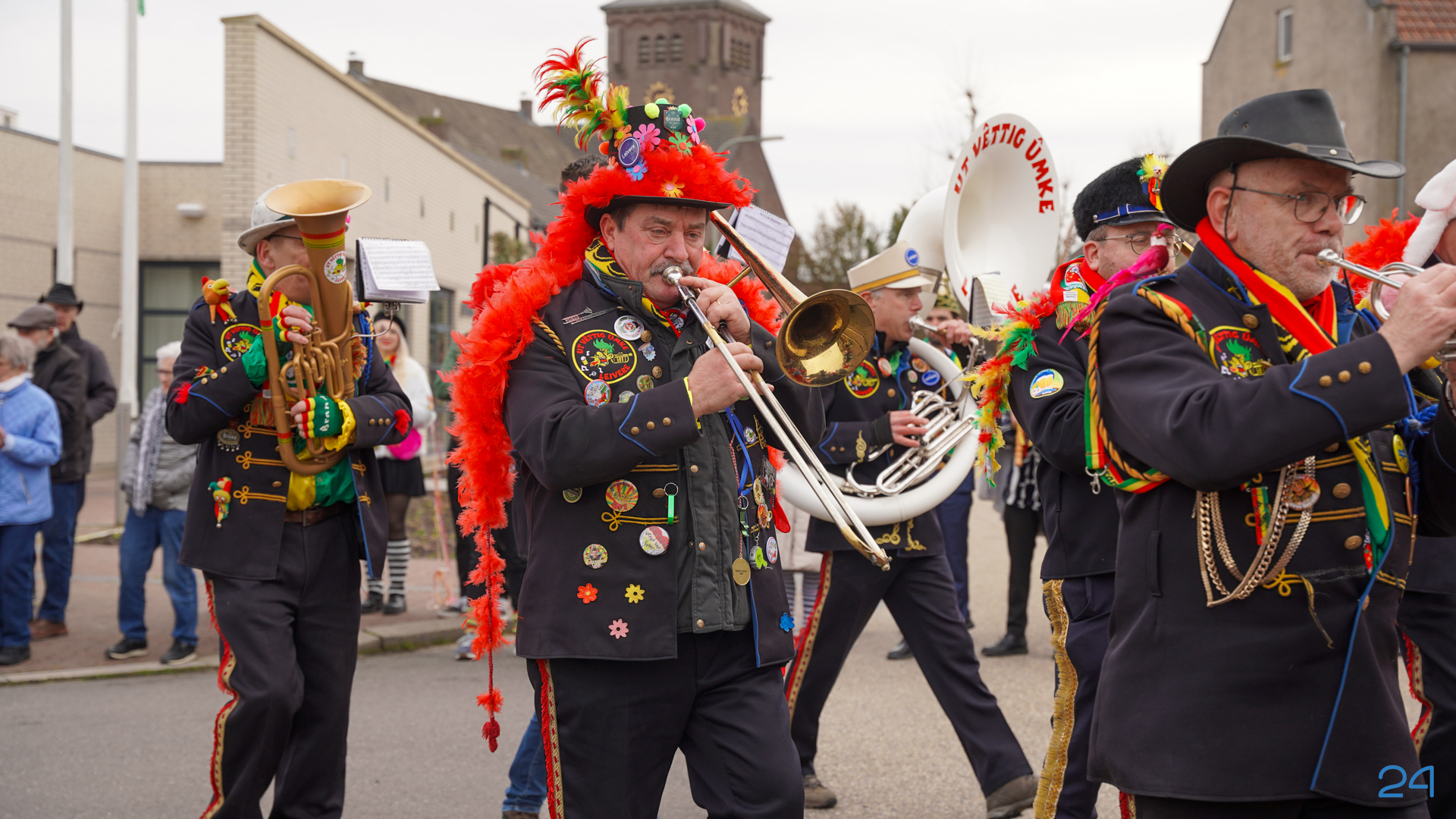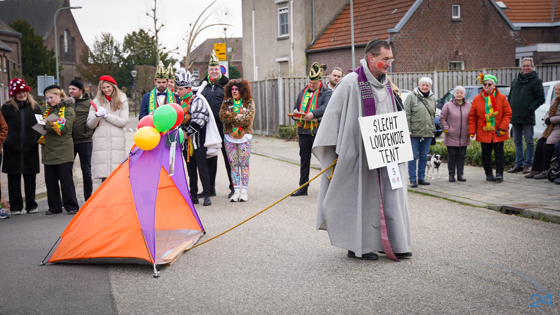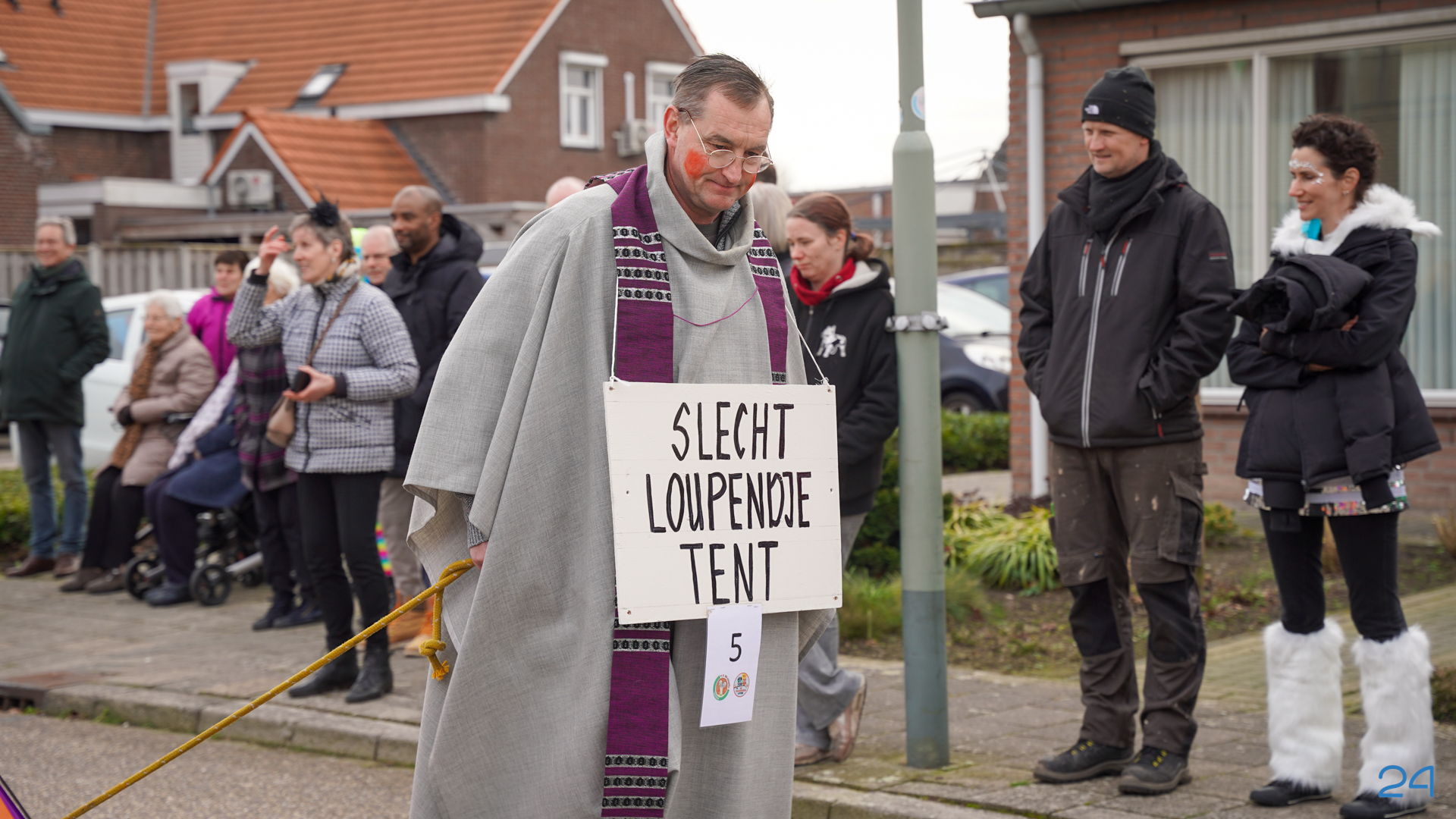 Langs de kant was het ook dit jaar weer gezellig druk. Tientallen inwoners, oud en jong, groot en klein, deden weer mee aan de bonte stoet. Er werd vanaf de zijlijn weer flink gelachen om de grappige spreuken en onderwerpen die de revue passeerde.