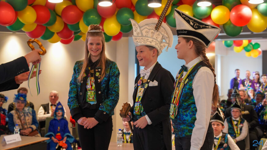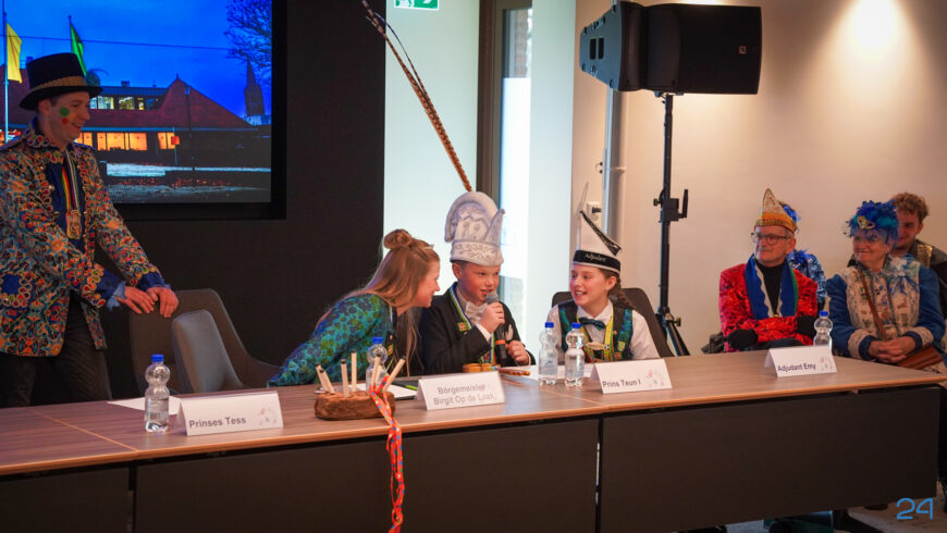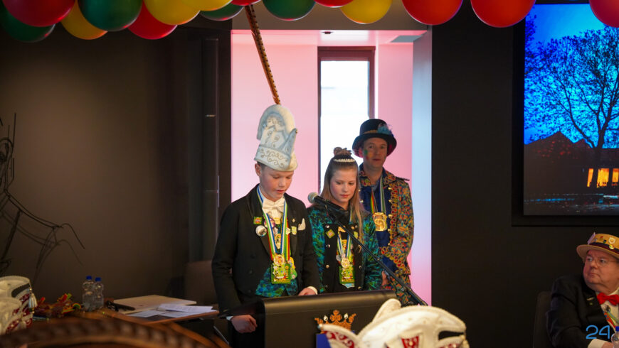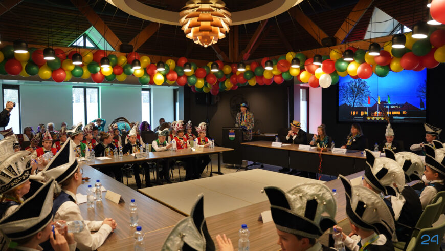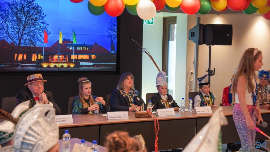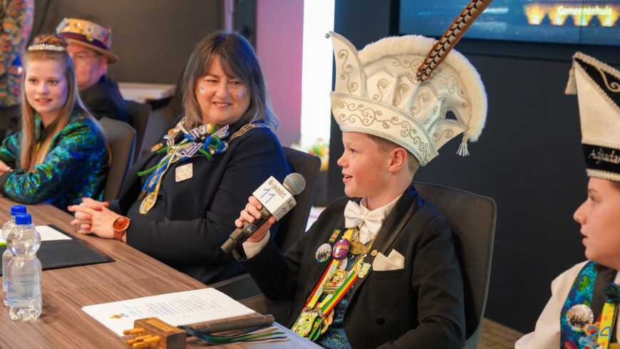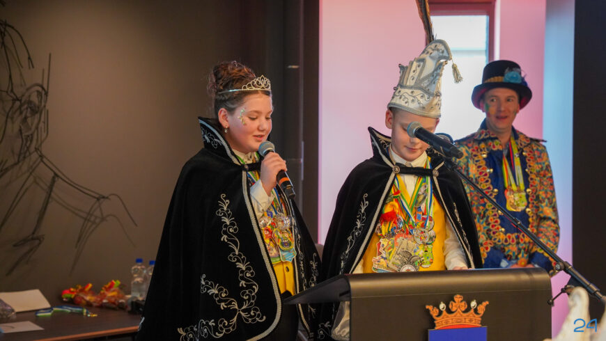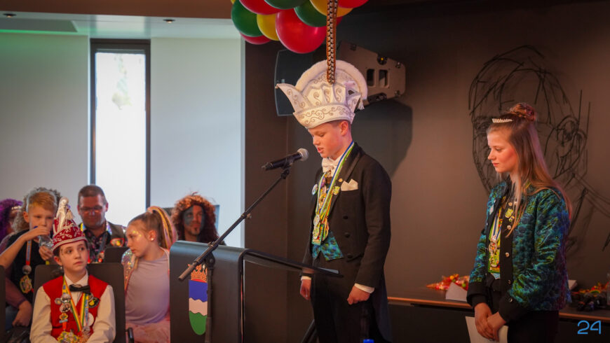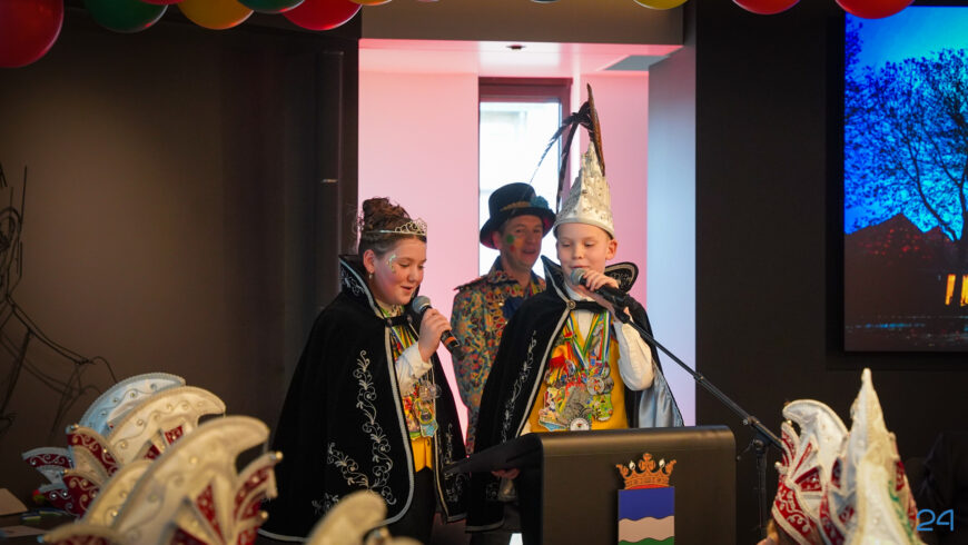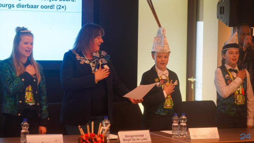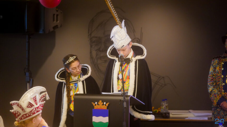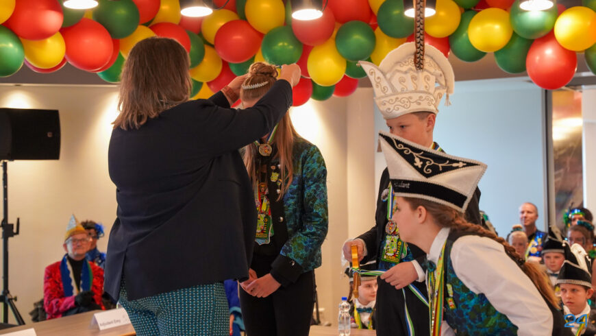 Zaterdagmiddag kwamen de jeugdprinsenparen, vorsten, adjudanten, raad van elf en een grote groep aanhangers naar de Kolderzaal in het gemeentehuis van Nederweert. Daar nam de jeugd tijdelijk de macht over van burgemeester Birgit Op de Laak.