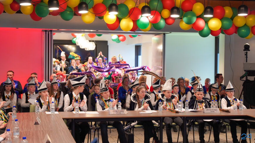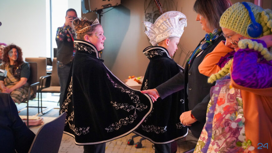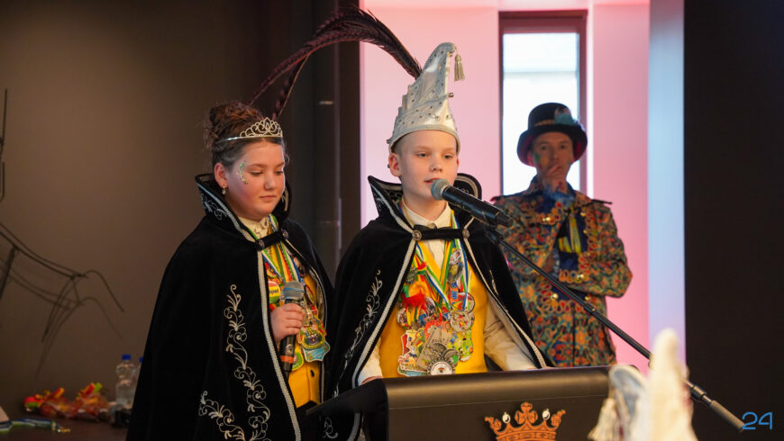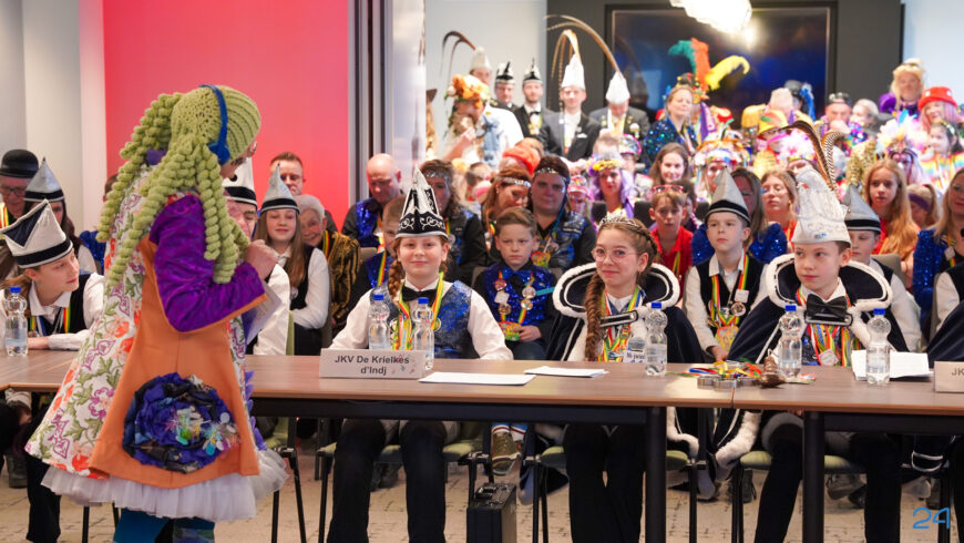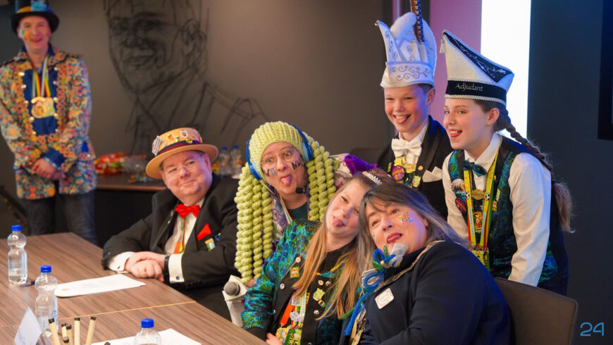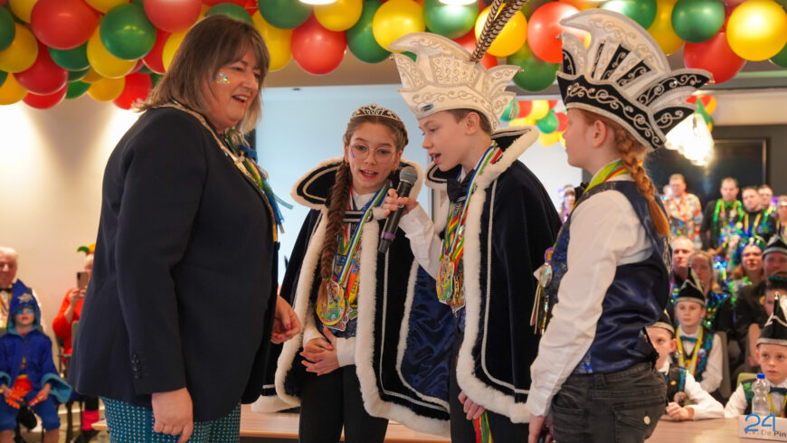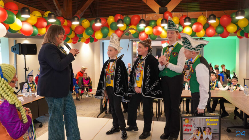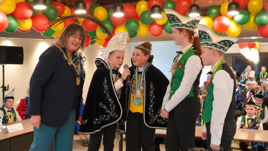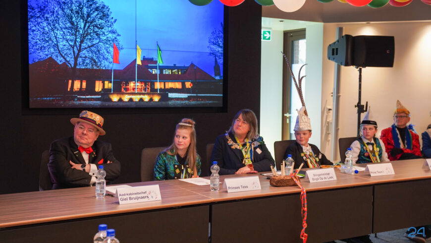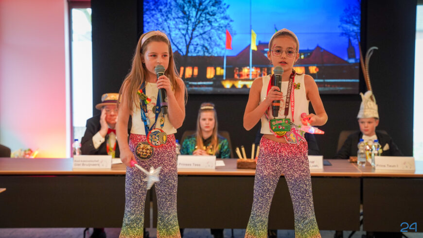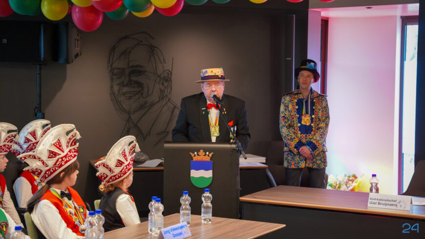 Zaterdagmiddag kwamen de jeugdprinsenparen, vorsten, adjudanten, raad van elf en een grote groep aanhangers naar de Kolderzaal in het gemeentehuis van Nederweert. Daar nam de jeugd tijdelijk de macht over van burgemeester Birgit Op de Laak.