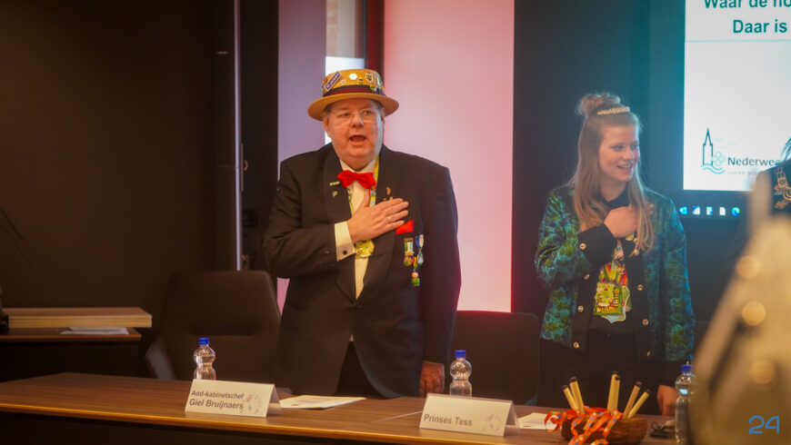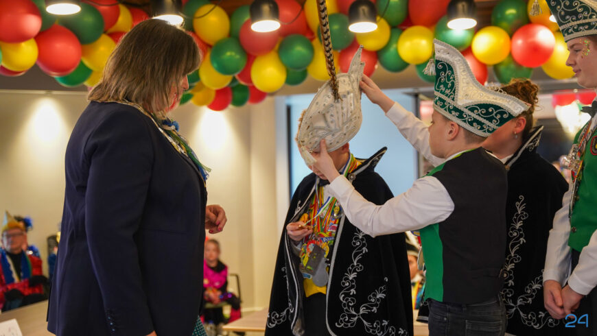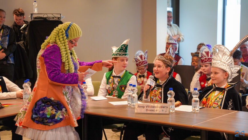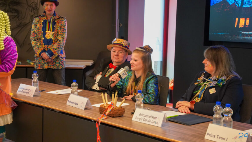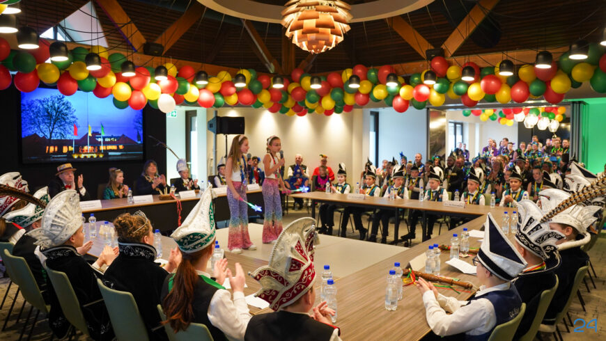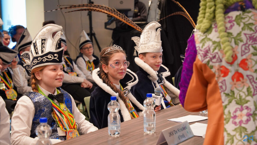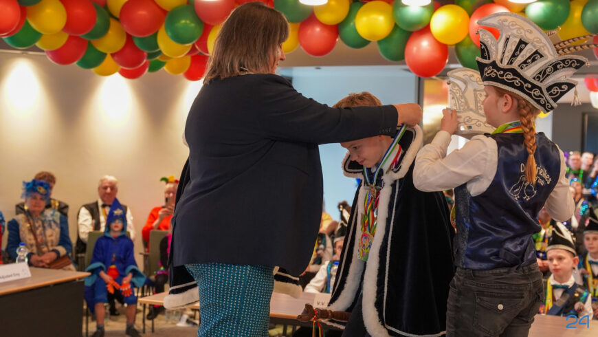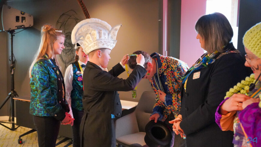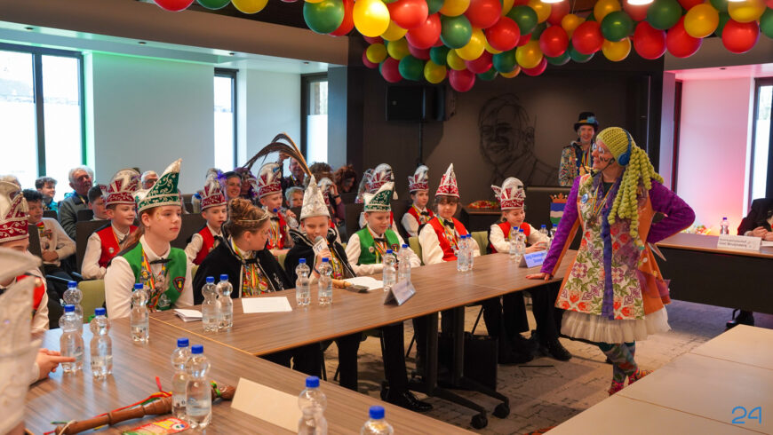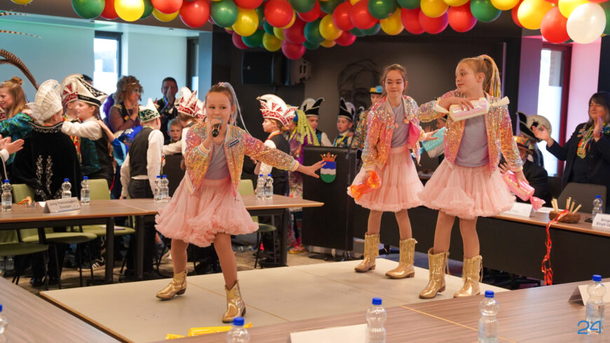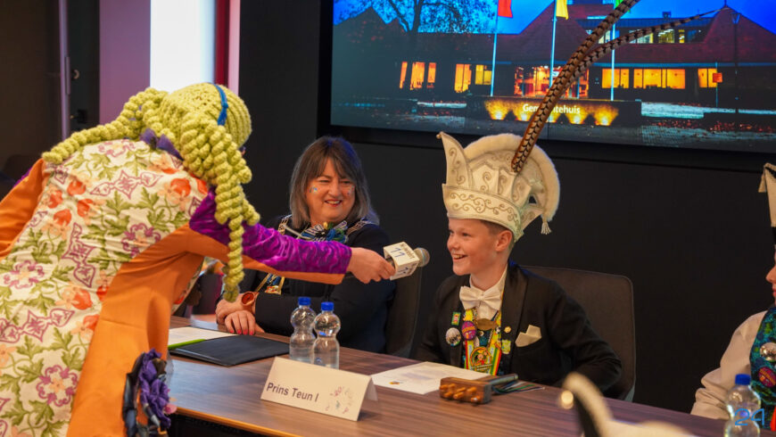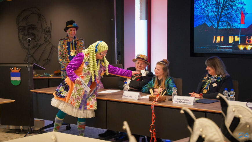 Zaterdagmiddag kwamen de jeugdprinsenparen, vorsten, adjudanten, raad van elf en een grote groep aanhangers naar de Kolderzaal in het gemeentehuis van Nederweert. Daar nam de jeugd tijdelijk de macht over van burgemeester Birgit Op de Laak.