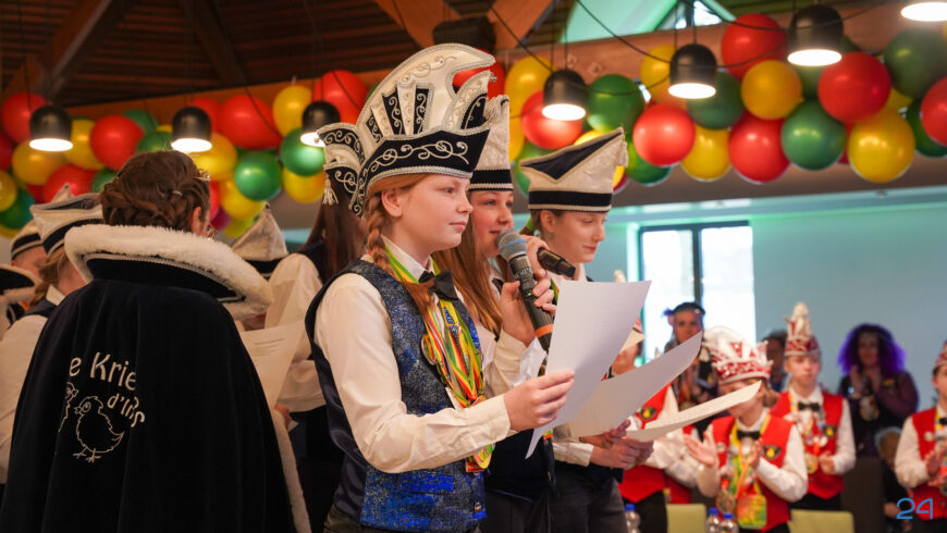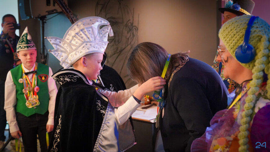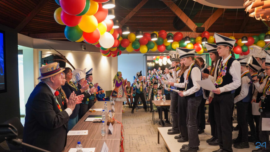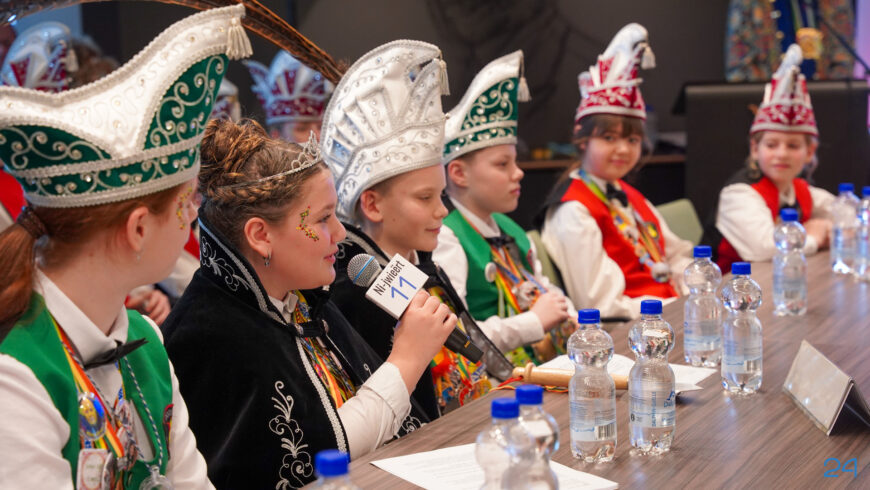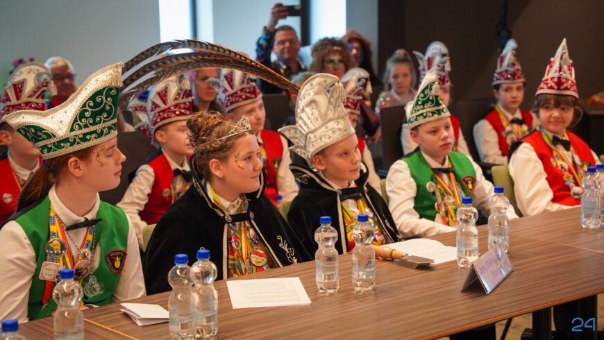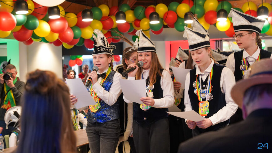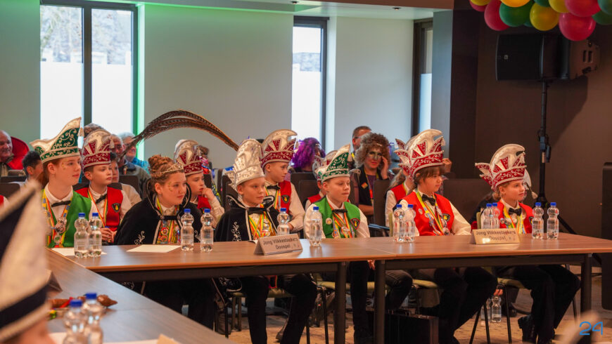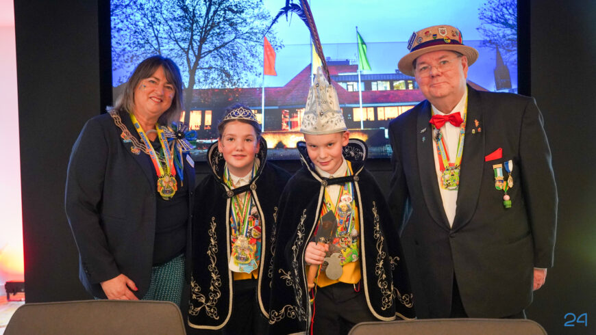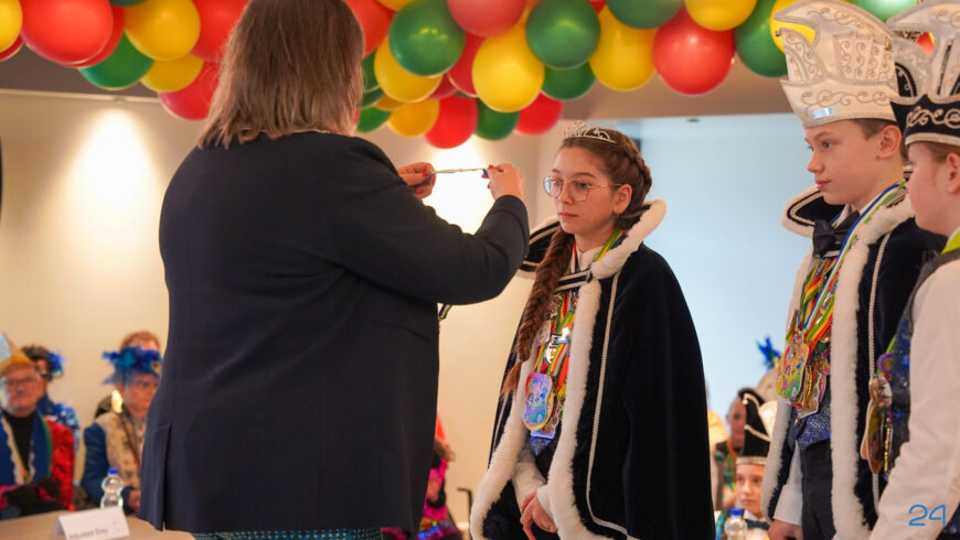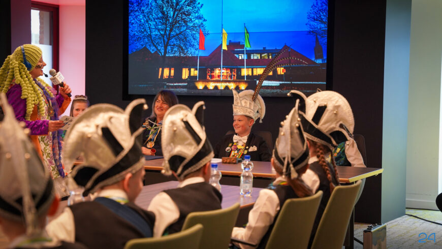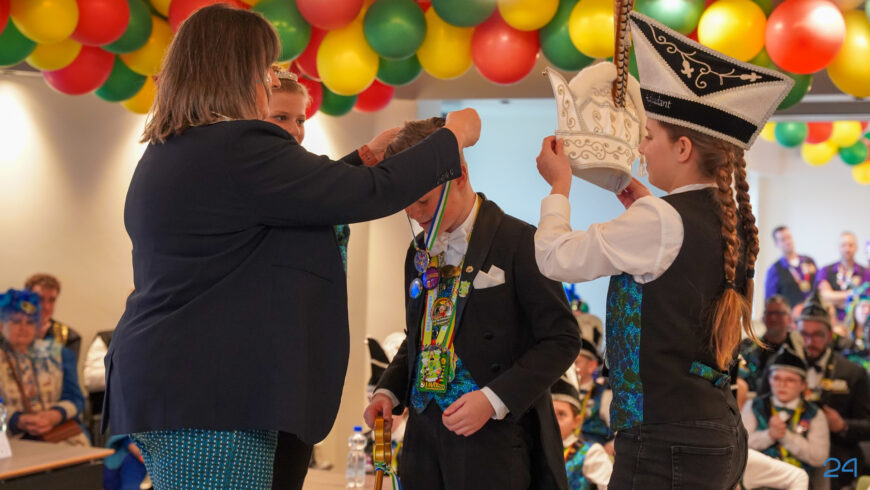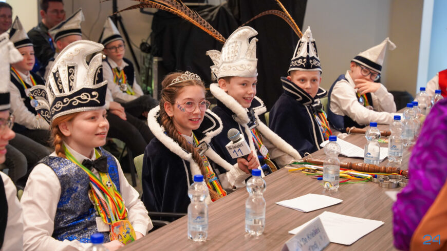 Zaterdagmiddag kwamen de jeugdprinsenparen, vorsten, adjudanten, raad van elf en een grote groep aanhangers naar de Kolderzaal in het gemeentehuis van Nederweert. Daar nam de jeugd tijdelijk de macht over van burgemeester Birgit Op de Laak.