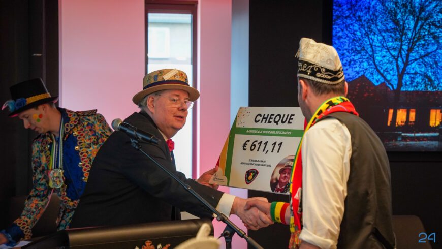 Tijdens de sleuteloverdracht overhandigde oud-kabinetschef Giel Bruijnaers cheques aan de aanwezige jeugdverenigingen. Elke cheque heeft een waarde van € 611,11 en is afkomstig uit de giften die hij ontving tijdens zijn afscheidsreceptie. De geste onderstreept zijn liefde voor de vastelaovendj en zijn bijzondere betrokkenheid bij de jeugd. Zoals gebruikelijk brengt het college zondag een bezoek aan VV de Uulskuukes in Leveroy, waar de cheque eveneens zal worden overhandigd aan de Leveroyse vastelaovend.