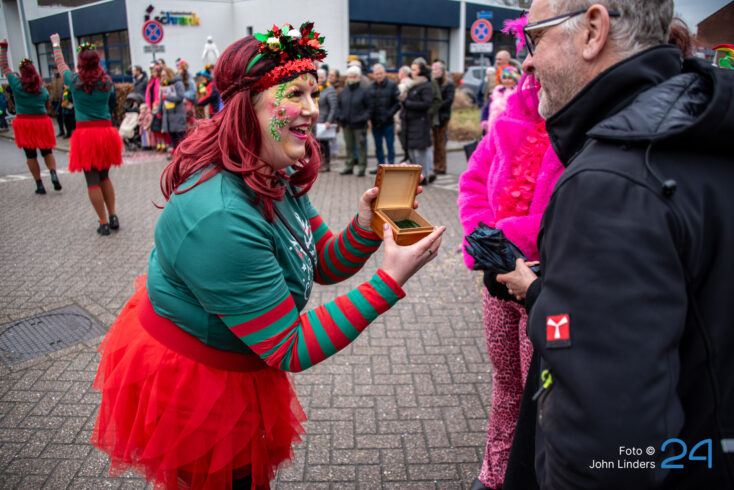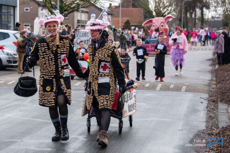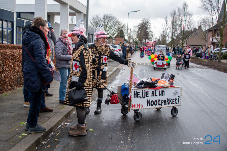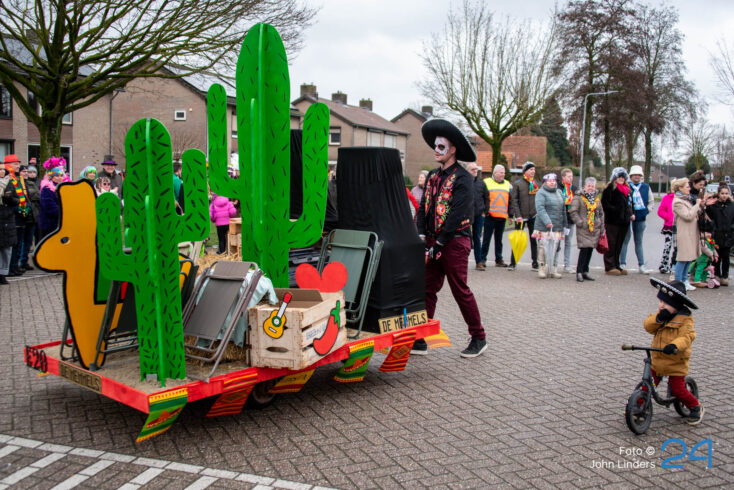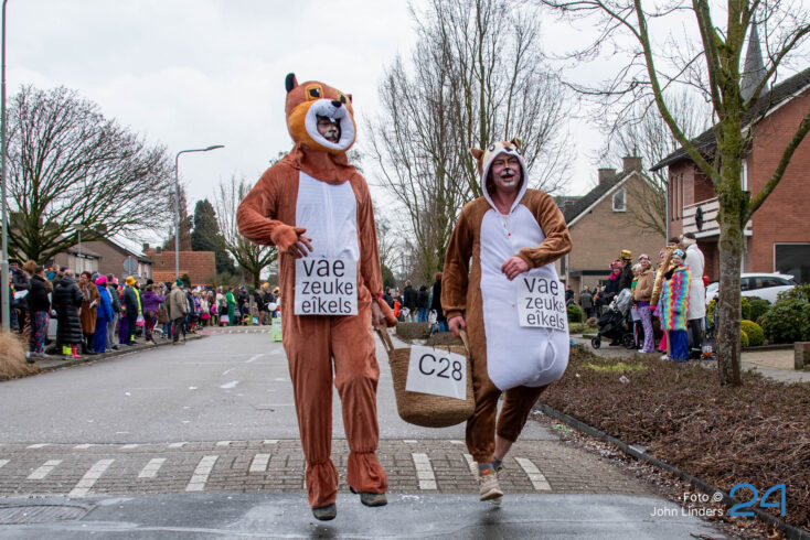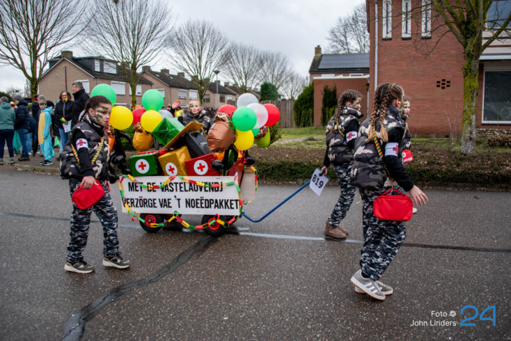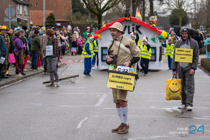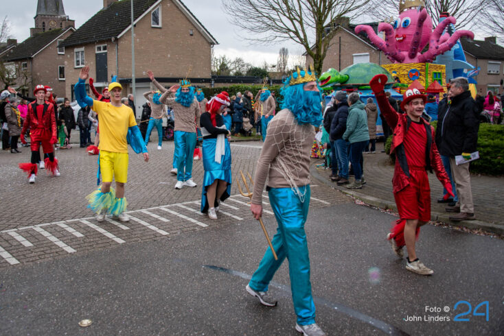 Maandagmiddag trok de grote vastelaovendjoptocht door de straten van Ospel. De deelnemers hadden weer hun best gedaan en alles uit de kast gehaald om het publiek te verrassen.