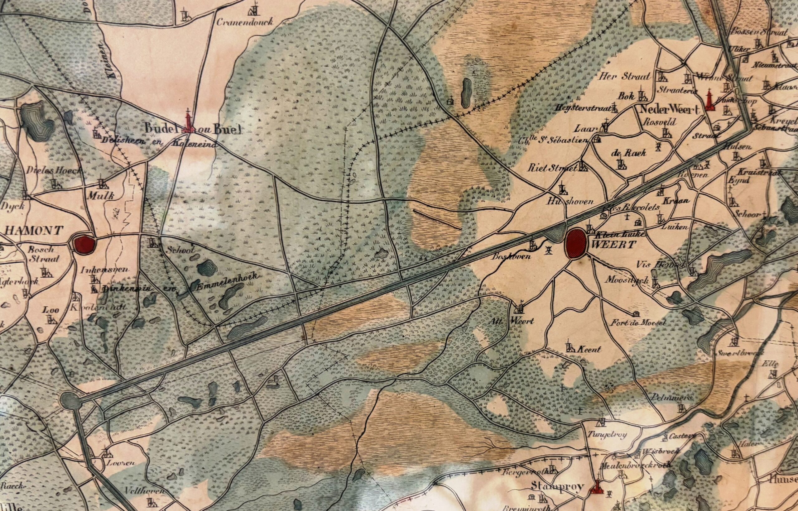 Carte de Belgique d’apres Ferraris. Blad 11, Ruremonde, 1:86.400, uitgegeven in 1831.