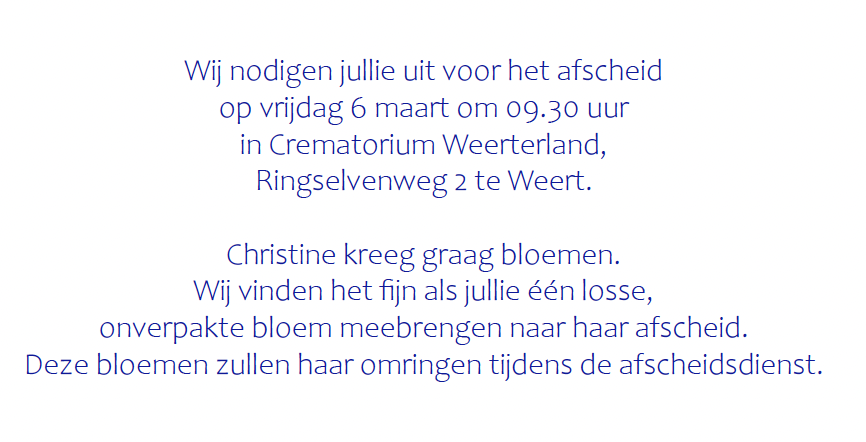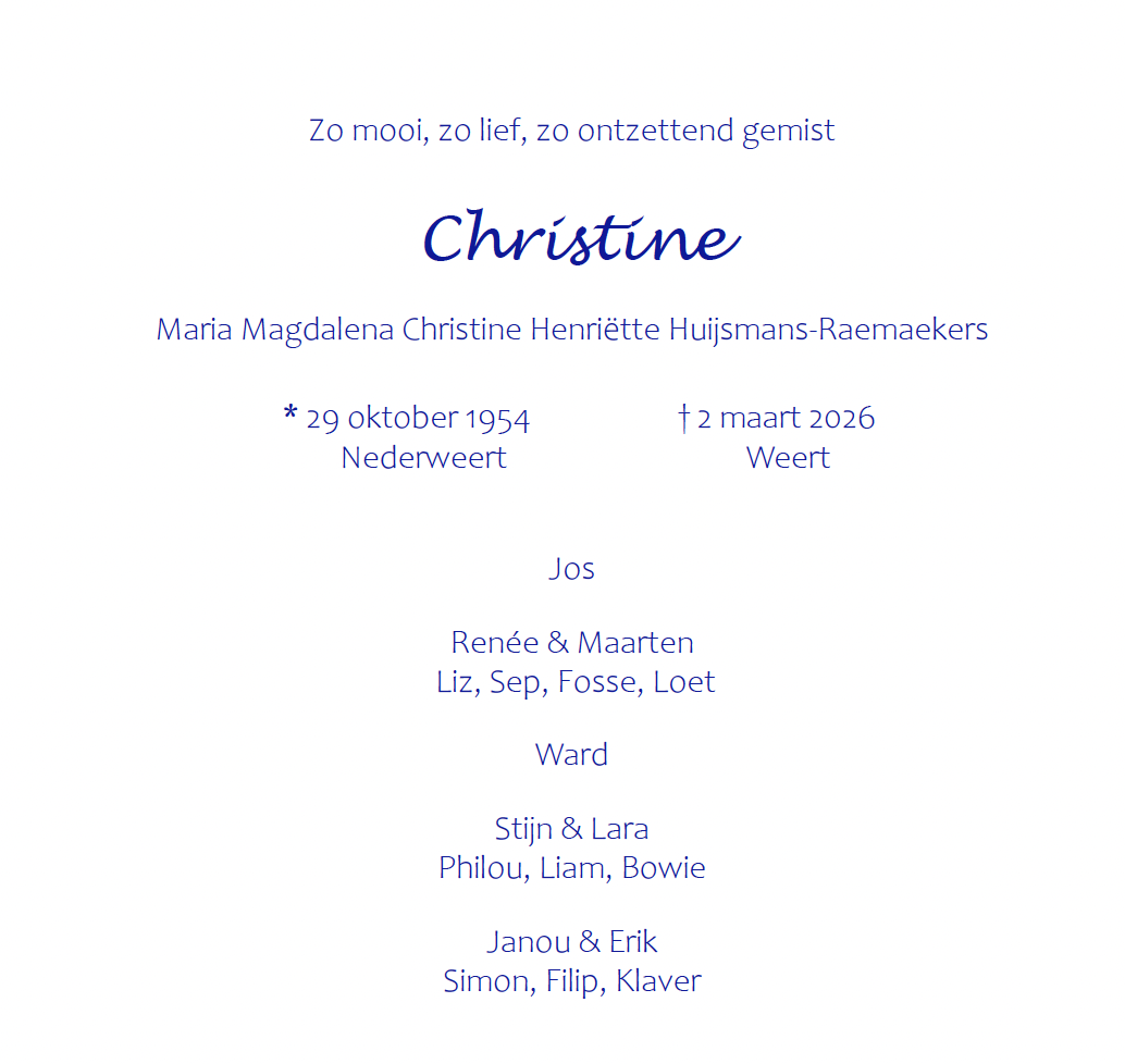 Overlijdensbericht | Christine Huijsmans – Raemaekers †