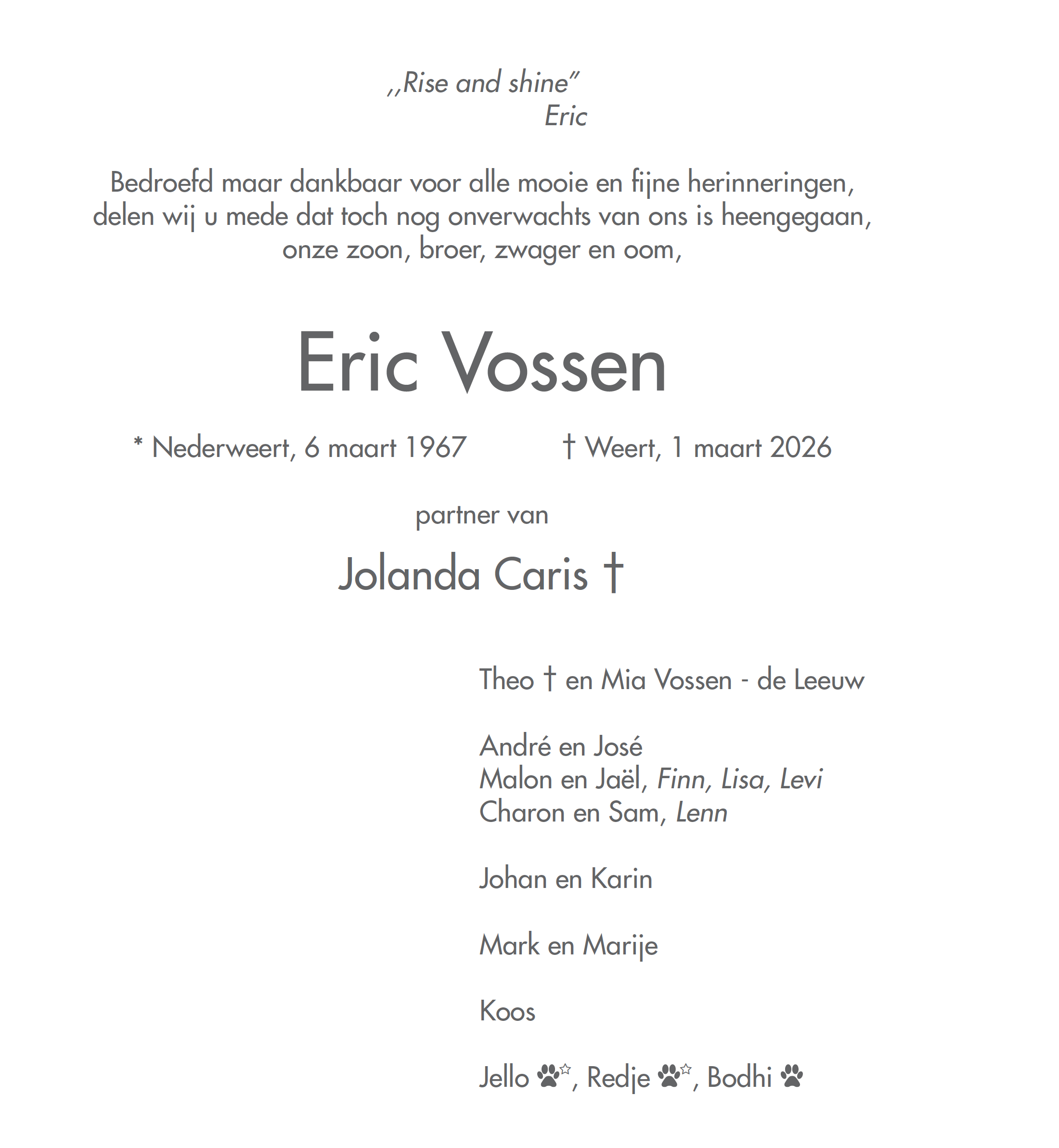 Overlijdensbericht | Eric Vossen †