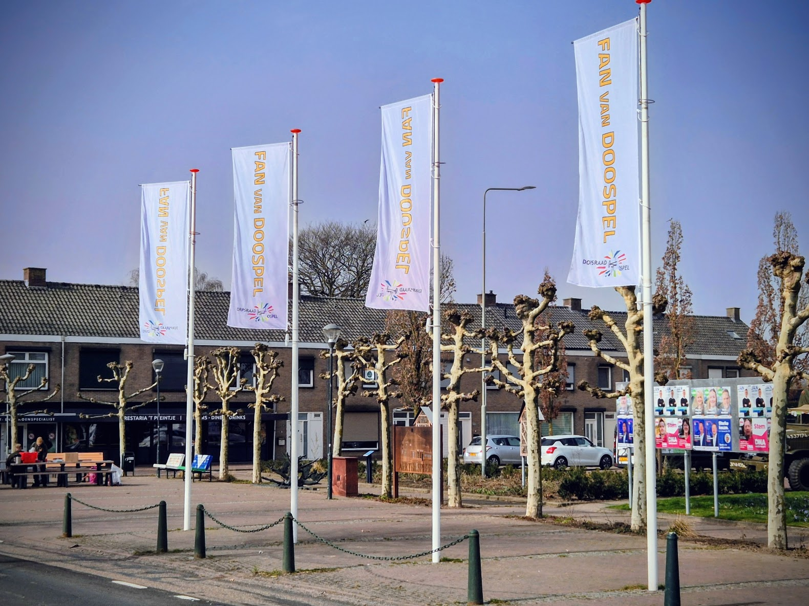 Op zaterdag 7 maart werden door het nieuwe bestuur van Dorpsraad Ospel een 4 tal nieuwe banieren gehesen aan het Aerthijsplein in Ospel. Hiermee werd het startsein gegeven van een totaal nieuw initiatief vanuit Dorpsraad Ospel. FAN van DOOSPEL is gelanceerd.