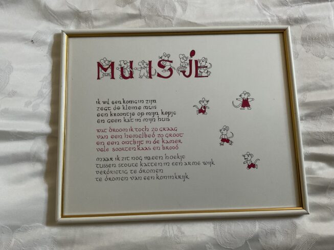 Zeven cursisten en docente Sjan Knoops tonen tijdens deze dagen mooie en unieke kalligrafische werken aan het publiek. Bezoekers krijgen zo de kans om kennis te maken met de schrijfkunst en te zien wat je allemaal met kalligrafie kunt doen.