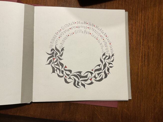 Cursisten en docente Kalligrafie van het Rick in Weert exposeren eigen werk in de Theuniskapel, Altweerterkapelstraat 2 in Weert. De expositie is te bezoeken op zondag 22 maart en zondag 29 maart van 11.00 tot 17.00 uur.