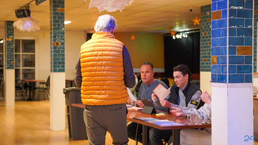 Tussen de uitslagen door zijn er interviews met de voorzitters van de fracties en kandidaat-raadsleden en in de zaal worden regelmatig de reacties gepeild.