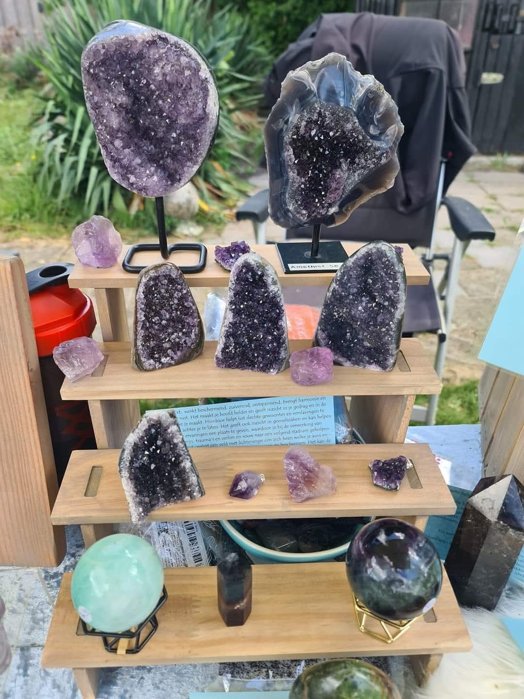 - Gezellige verkoop stands met unieke spirituele producten en edelstenen.