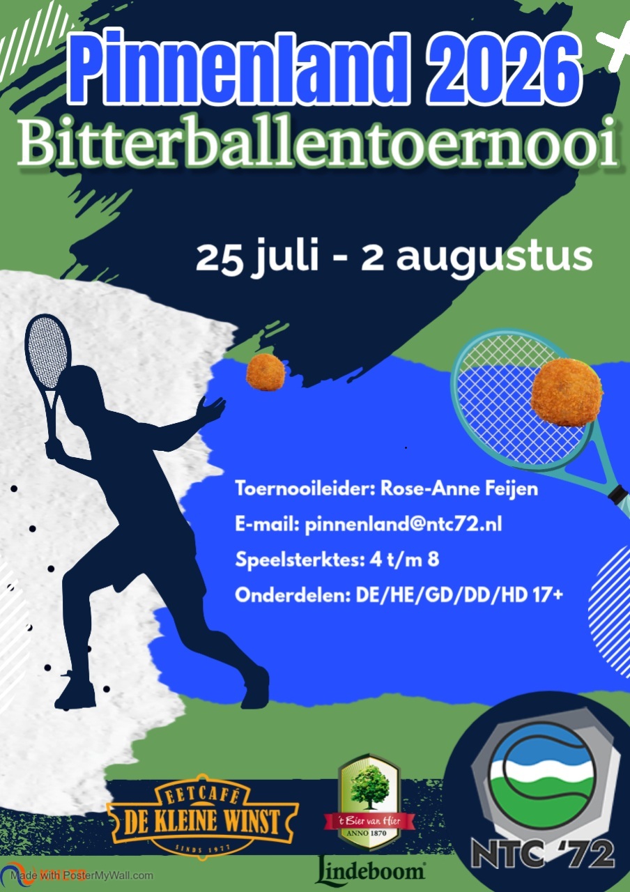 Bij tennisclubs door de hele regio verschijnt hij ineens op prikborden, kantinedeuren en zelfs naast de toiletten: de aankondiging van het Pinnenland 2026 Bitterballentoernooi, van 25 juli tot en met 2 augustus 2026.