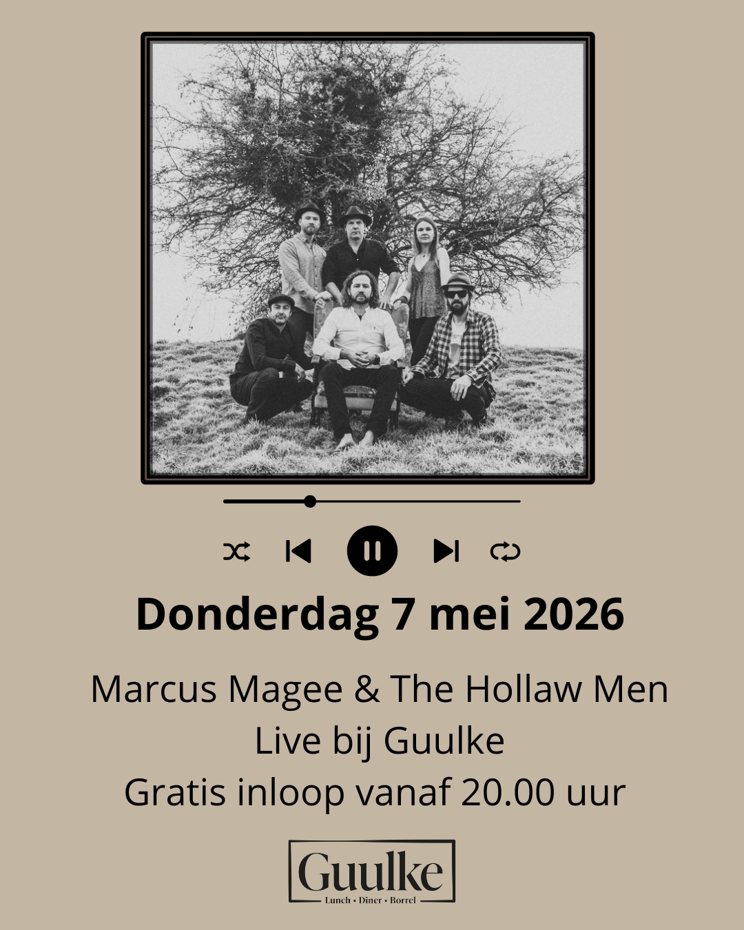 Marcus Magee & The Hollaw men komt met een speciale intieme semi-akoestische show naar Restaurant Guulke op 7 mei!