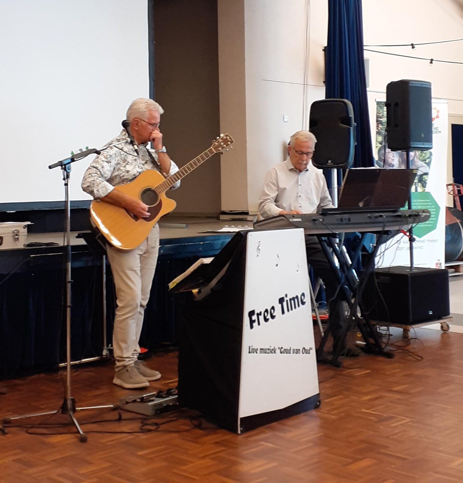 De muziek werd verzorgd door het duo Free Time, bestaande uit Theu Ketelaers en Ton van de Moosdijk. Zij brachten muziek uit vroegere jaren, die door velen werd meegezongen en mooie herinneringen naar boven bracht. Met tijden gingen de handen in de lucht of kwamen de voetjes van de vloer. In de pauze werd men getrakteerd op een lekker stuk vlaai met koffie of thee.