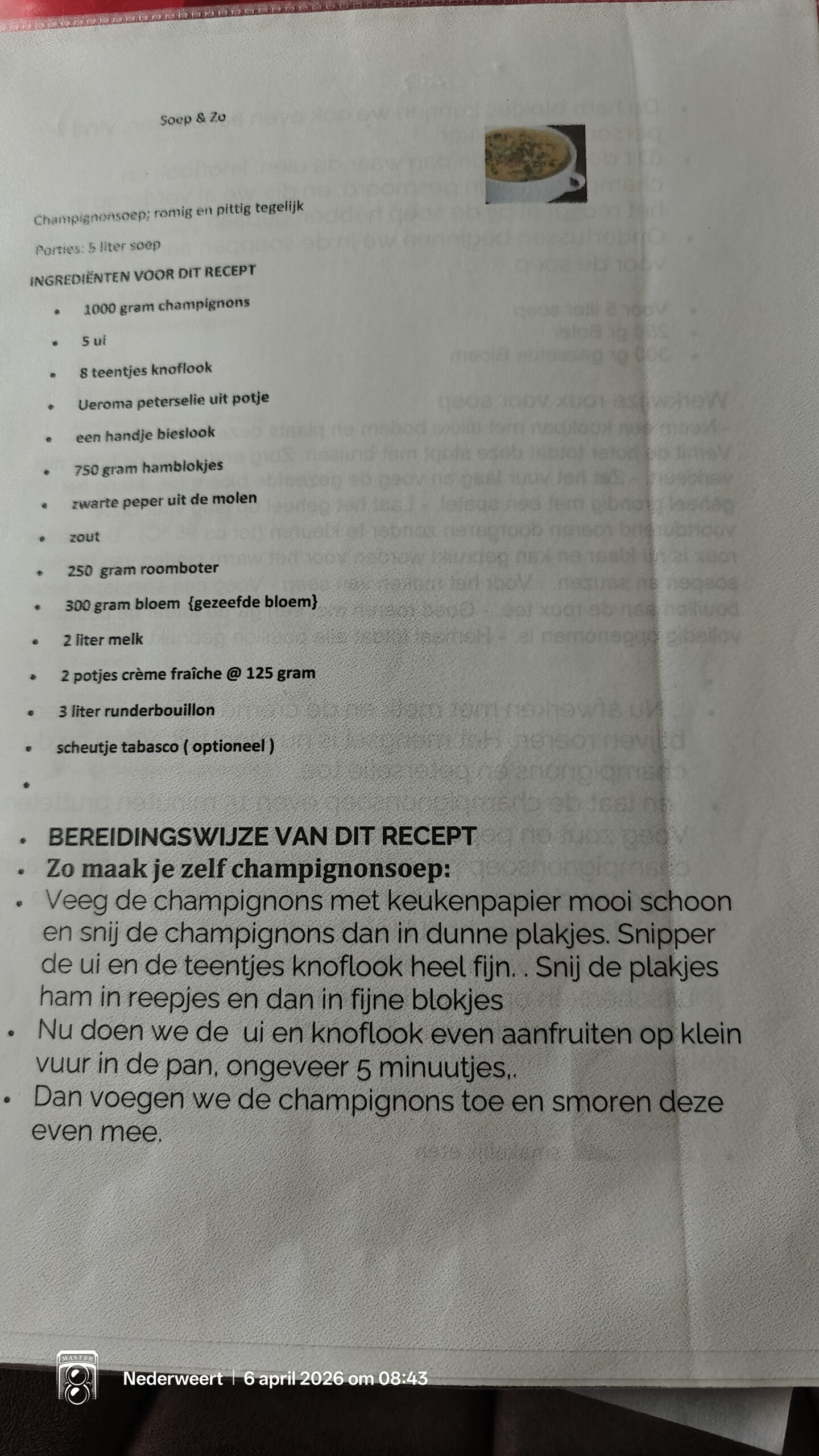 Gisteren, op 13 april, heeft er weer Soep & Zo plaatsgevonden. Ondanks het cijfer 13 werden er 2 overheerlijke soepen gemaakt, champignons soep en mosterdsoep.