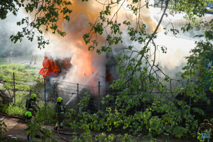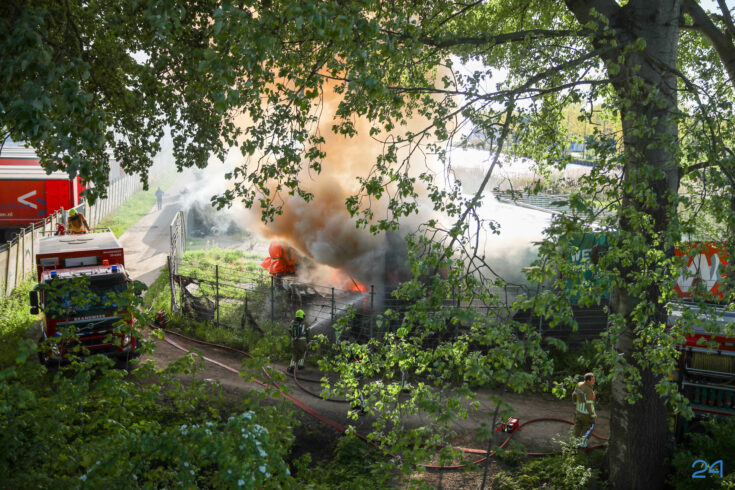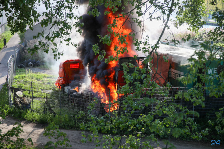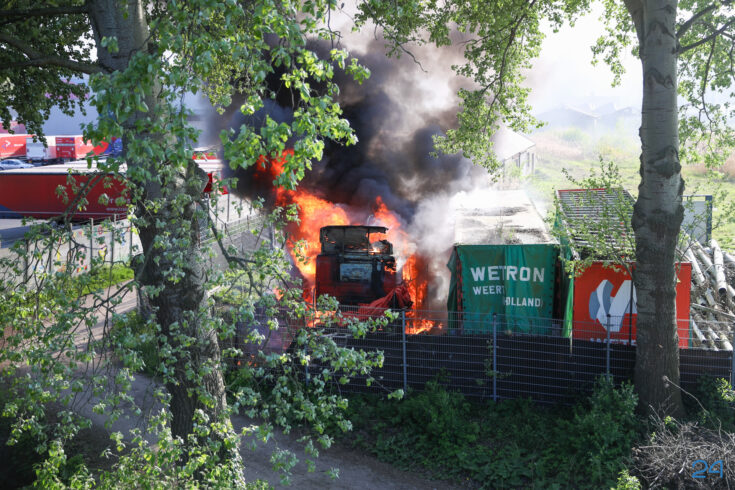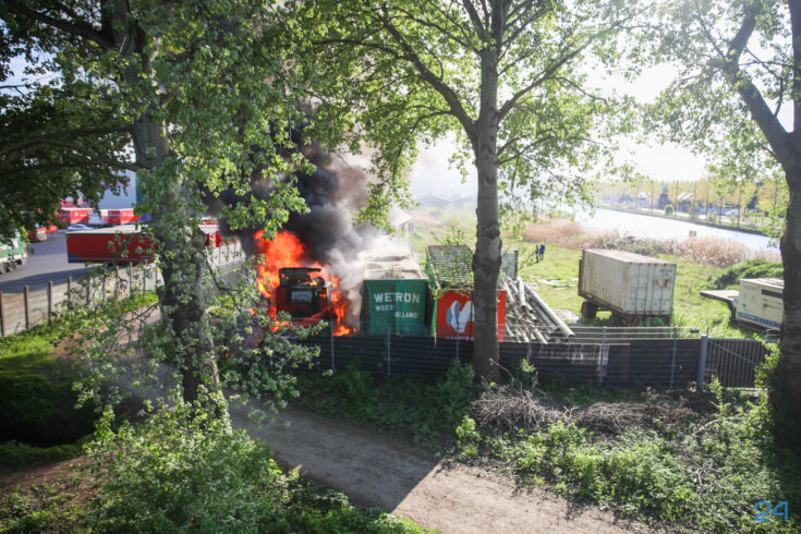 Oude vrachtwagens in brand op Scheepsbouwkade in Weert