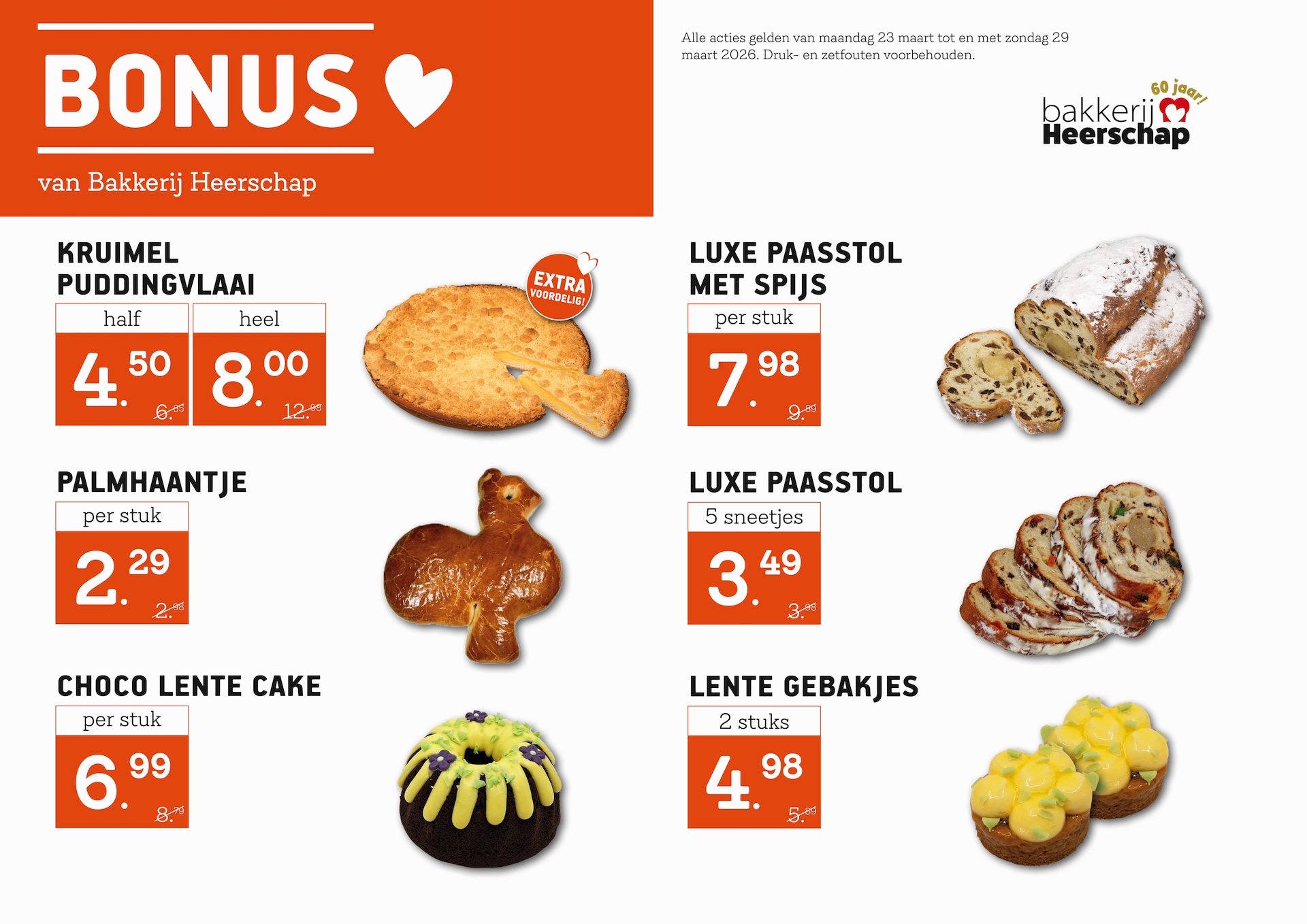 Geniet van versgebakken ambachtelijke broden, de heerlijkste vlaaien en seizoensgebonden producten. Zo vers en zo lekker, dat kiezen een kunst op zich is. De producten van Bakkerij Heerschap worden 365 dagen per jaar met liefde voor je gemaakt en dat proef je! Iedere week selecteren de bakkers nieuwe weekacties voor jou. Welke actie kies jij?