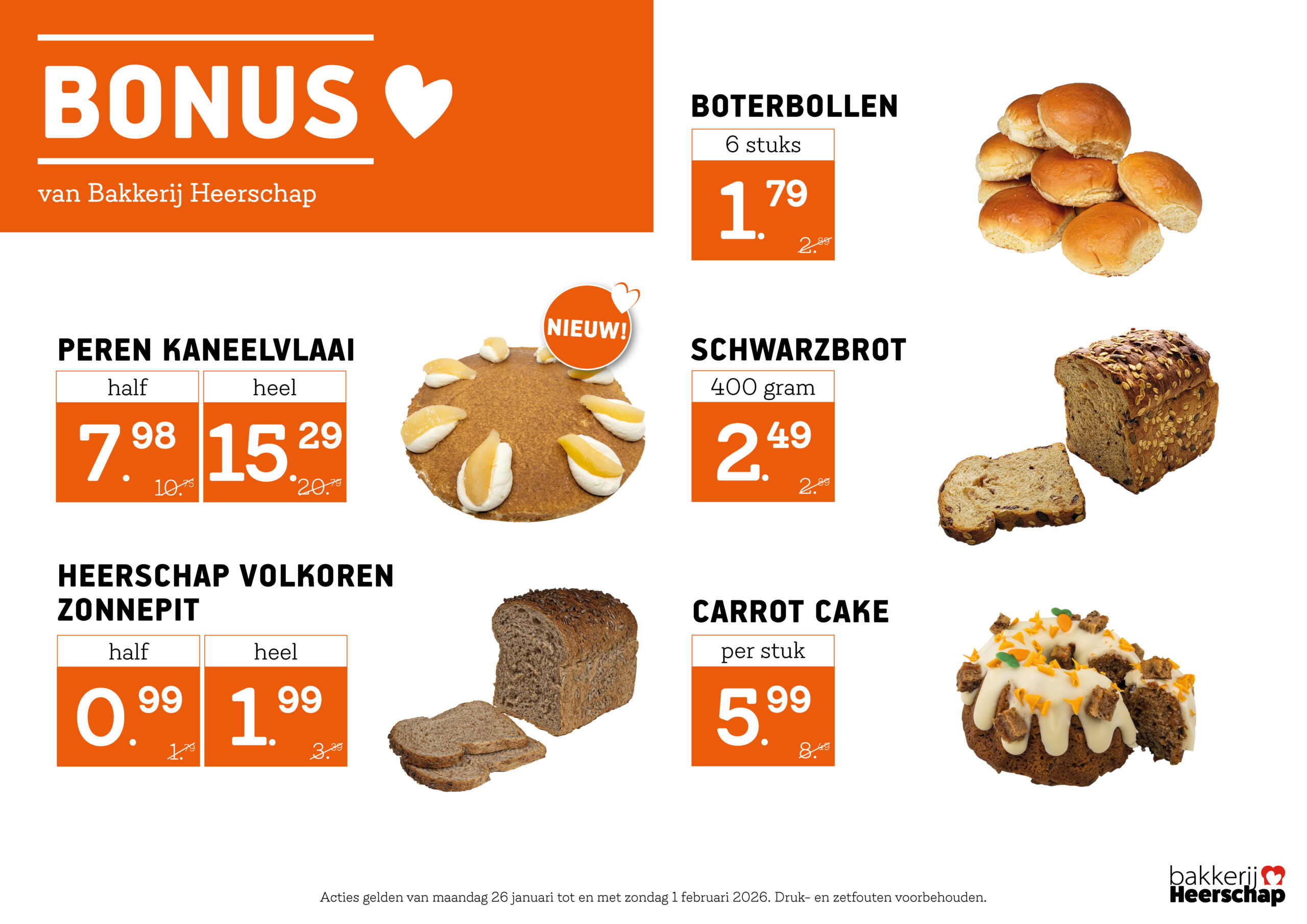 Geniet van versgebakken ambachtelijke broden, de heerlijkste vlaaien en seizoensgebonden producten. Zo vers en zo lekker, dat kiezen een kunst op zich is. De producten van Bakkerij Heerschap worden 365 dagen per jaar met liefde voor je gemaakt en dat proef je! Iedere week selecteren de bakkers nieuwe weekacties voor jou. Welke actie kies jij?