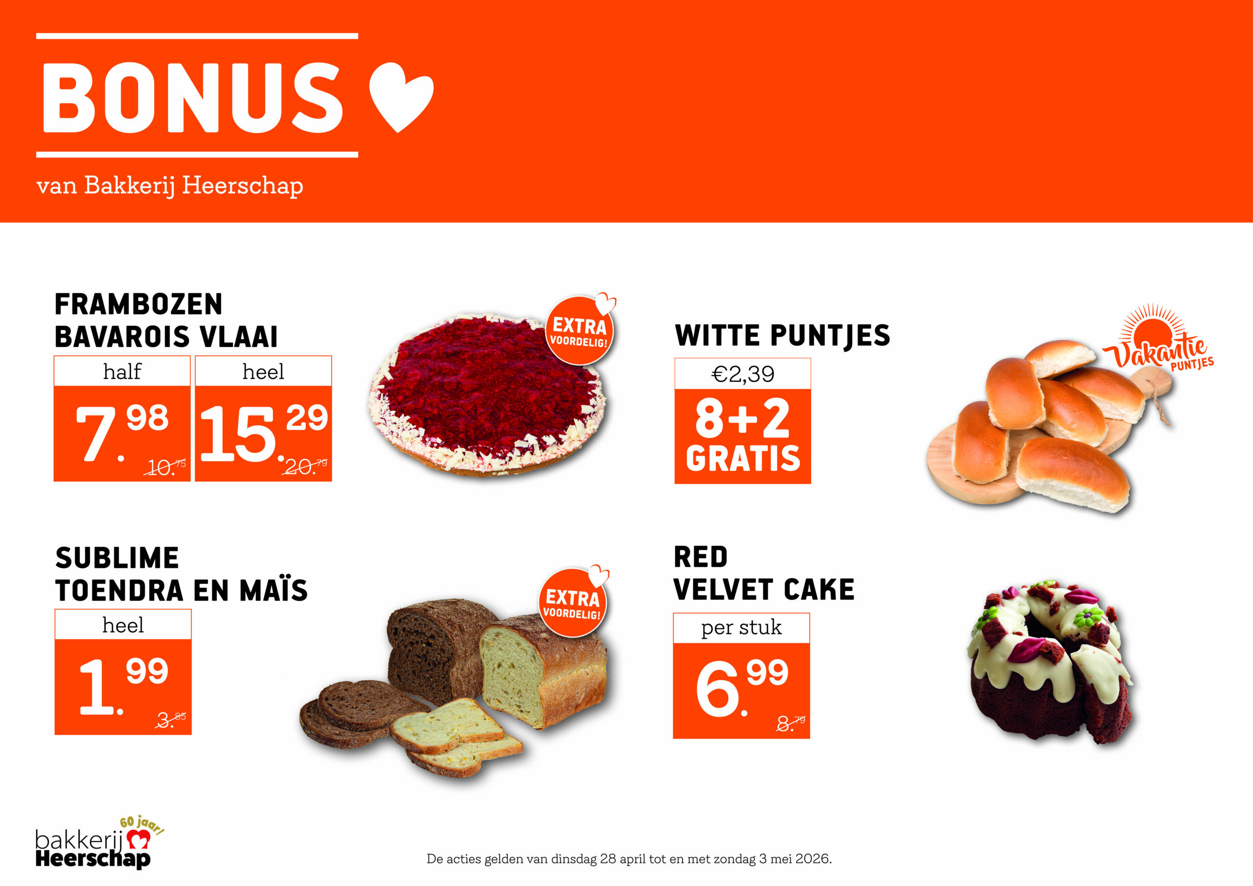 Geniet van versgebakken ambachtelijke broden, de heerlijkste vlaaien en seizoensgebonden producten. Zo vers en zo lekker, dat kiezen een kunst op zich is. De producten van Bakkerij Heerschap worden 365 dagen per jaar met liefde voor je gemaakt en dat proef je! Iedere week selecteren de bakkers nieuwe weekacties voor jou. Welke actie kies jij?