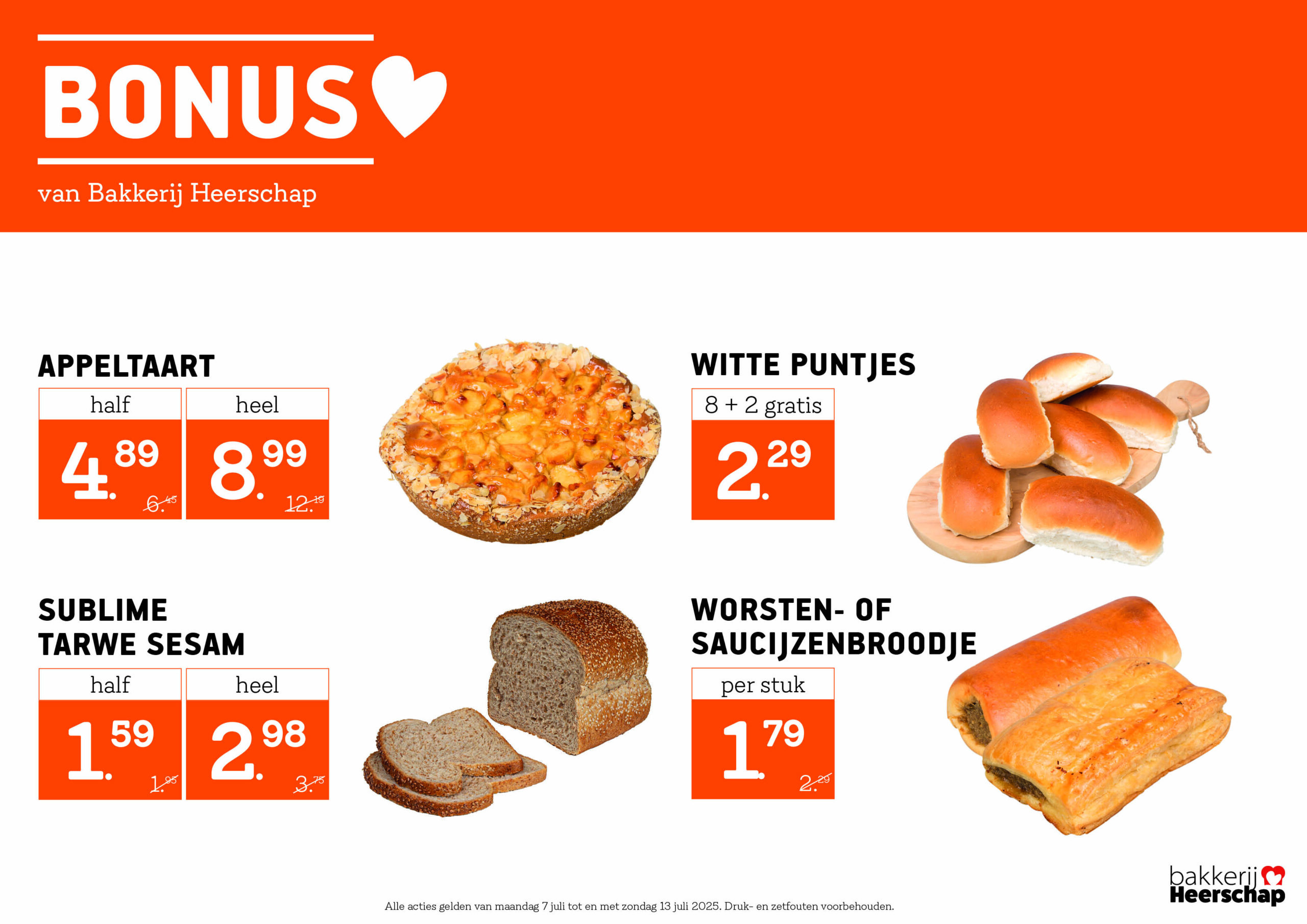 Geniet van versgebakken ambachtelijke broden, de heerlijkste vlaaien en seizoensgebonden producten. Zo vers en zo lekker, dat kiezen een kunst op zich is. De producten van Bakkerij Heerschap worden 365 dagen per jaar met liefde voor je gemaakt en dat proef je! Iedere week selecteren de bakkers nieuwe weekacties voor jou. Welke actie kies jij?