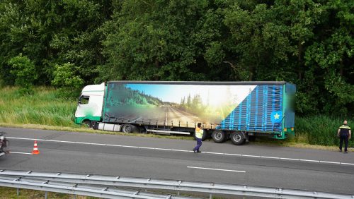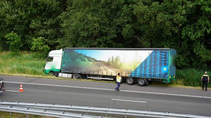 Vrachtwagen raakt van de weg op de A2 richting Nederweert
