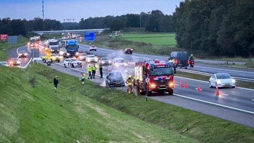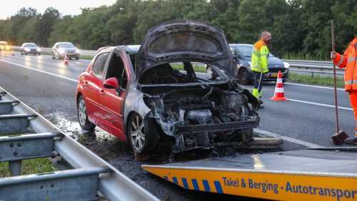 Auto in brand op A2 bij afrit Kelpen-Oler