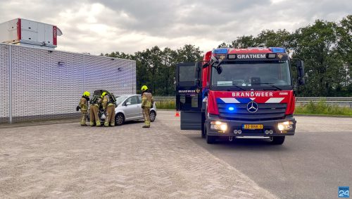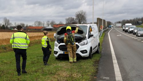 Rook onder motorkap personenauto op snelweg A2 bij Weert