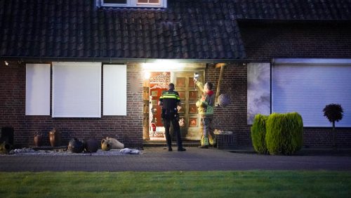 Explosie vernielt voordeur bij woning aan Ommelpad in Ospel