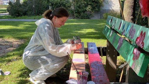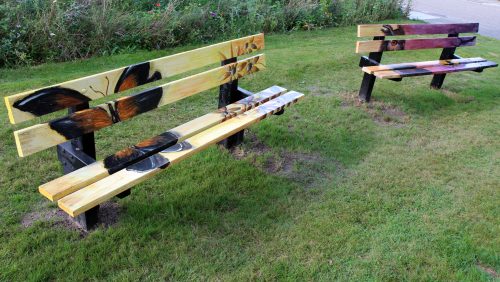 Nederweert fleurt op door creatief schilderwerk op bankjes/picknicktafels