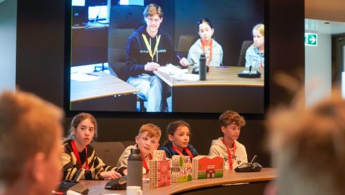 Yuverta-leerlingen debatteren als gemeenteraad over festivalplan