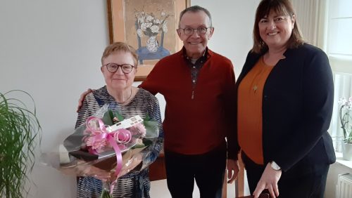 Burgemeester Op de Laak bezoekt diamantenpaar Harrie en Mia Custers-Haanen