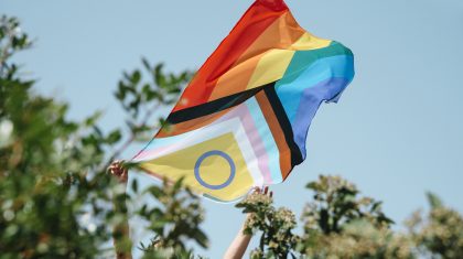 shows an intersex-inclusive progress pride flag
