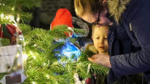 Ontsteken van de lichtjes op het plein bij de kerk in Leveroy