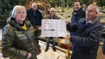 Cheque Wijkraad Leuken voor vrijwilligers ‘Kerstpanorama’